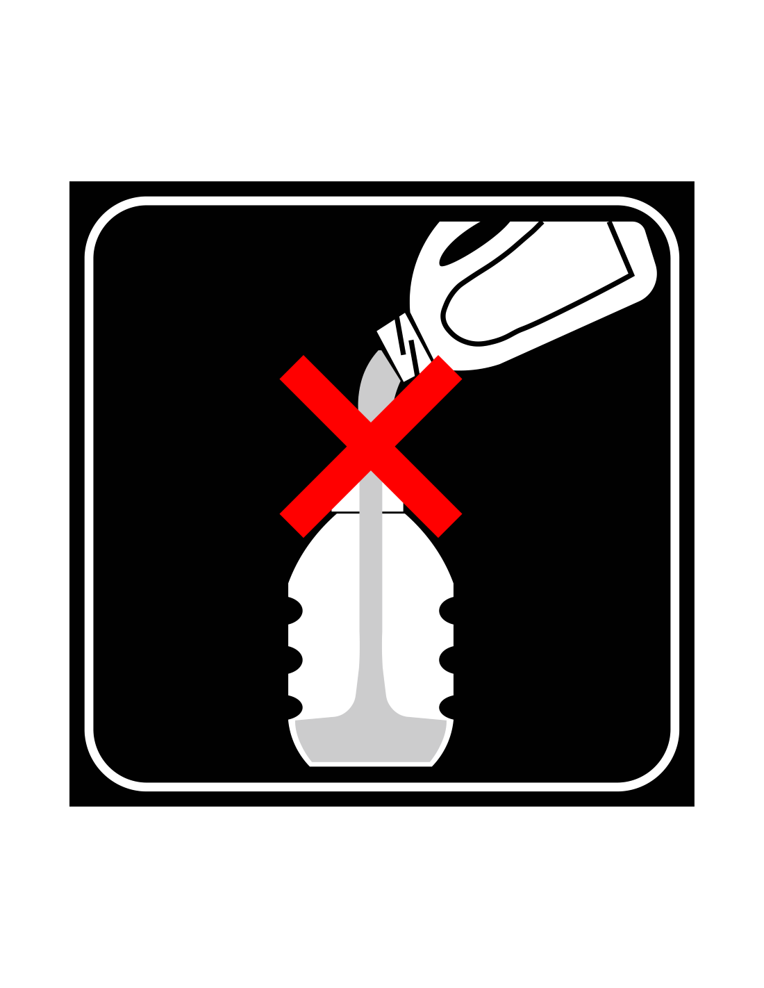 - Vierkante sticker met symbool overschudden fles en rood kruis