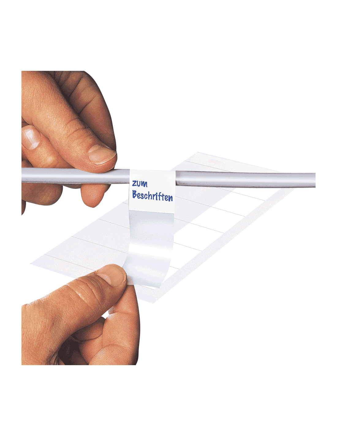 Deze beschrijfbare kabellabels zijn gemaakt van zelfklevende en zachte PVC-folie en zijn verkrijgbaar in drie verschillende formaten: 38,1 x 25,4 mm, 57,2 x 25,4 mm en 95,3 x 25,4 mm. De afmeting van het schrijfvlak en het aantal labels per vel verschilt per afmeting. De labels zijn geschikt voor permanente codering door het beschermlaminaat op het oppervlak van het label. Je kunt de labels beschrijven met balpen of potlood.