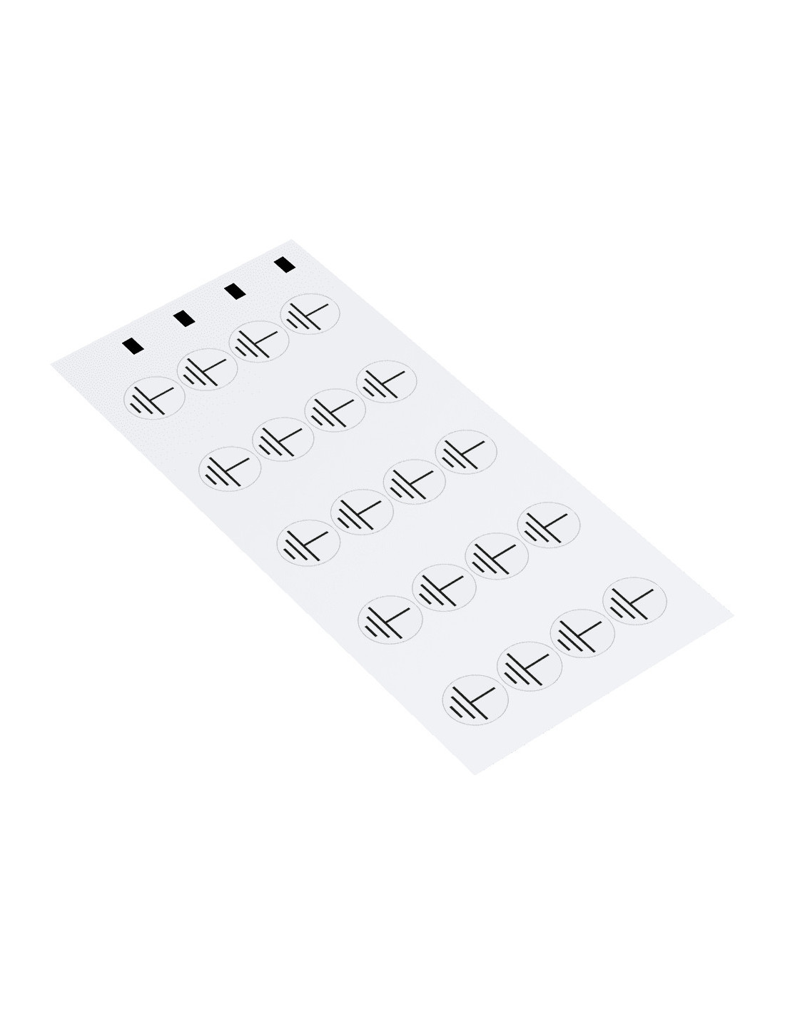 De aarde geleider sticker is een zwart met witte geleider markering zonder een symbool. Deze geleider markering is verkrijgbaar in vijf verschillende afmetingen. Afhankelijk van de grootte zijn de aarde geleider stickers verkrijgbaar op vellen van 10 en 20 stuks.