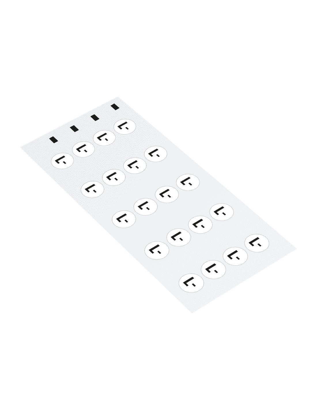 De negatieve gelijkstroom L- sticker is RoHs-conform volgens de veiligheidsnormen DIN EN 60445 / IEC 60417 en zowel voor binnen als buiten geschikt. De stickers zijn in verschillende afmetingen verkrijgbaar. Dit zijn 12,5, 16, 20, 25 en 31,5 millimeter.