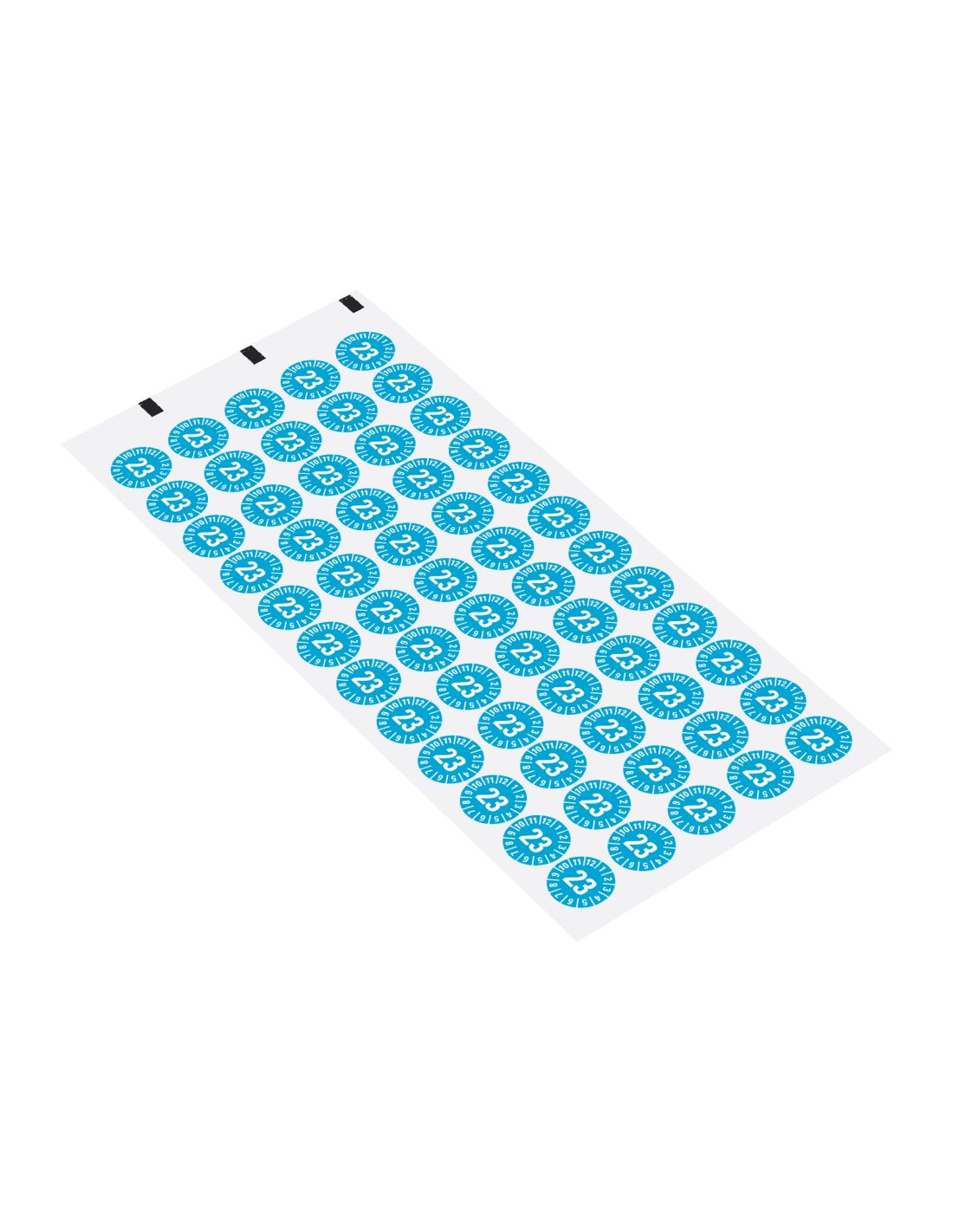Deze jaarkeuringssticker is voorzien van een veiligheidsfolie met een veiligheidspons. Hierdoor vernietigt de sticker zichzelf als iemand deze (onterecht) probeert te verwijderen. Bij een correcte verwidering laat de sticker geen resten achter. Buiten dat is de sticker zeer duurzaam en is hij bijvoorbeeld temperatuurbestendig van -40 tot +80°C. Wij raden aan deze sticker enkel binnen te gebruiken. Het jaartal van de volgende keuring wordt duidelijk weergegeven door de laatste twee cijfers van het betreffende jaartal. Bovendien is de sticker voorzien van een kleurcodering, waarbij ieder jaartal een eigen kleur heeft. Deze sticker (met dambordpatroon) is enkel verkrijgbaar in de diameter 15 mm.
