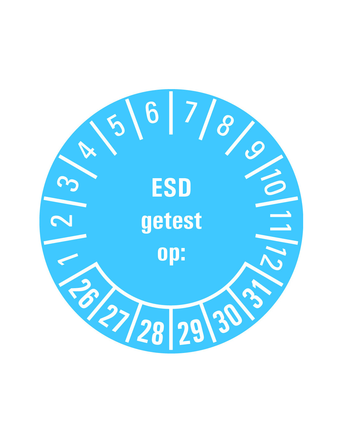 Belangrijkste kenmerken ESD getest op keuringssticker 26-31 op vel