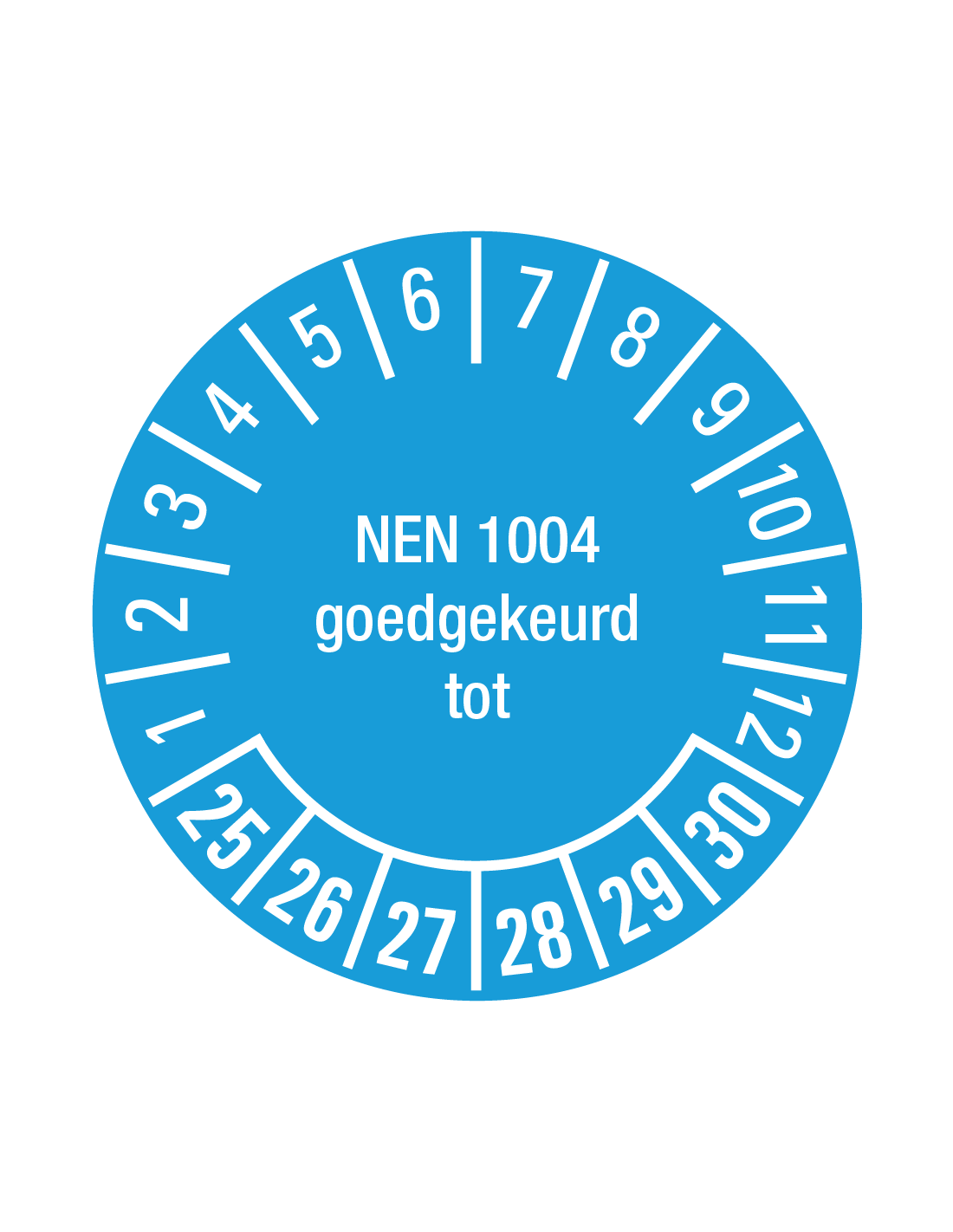 Belangrijkste kenmerken NEN 1004 keuringssticker 25-30 op vel