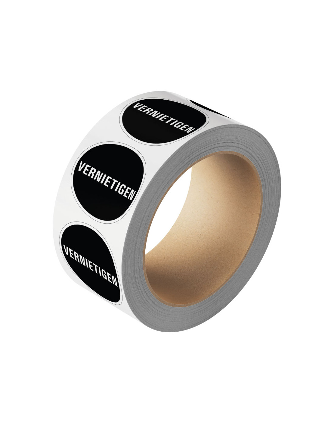 De vernietigen sticker op rol, wordt in verschillende maten geleverd:
