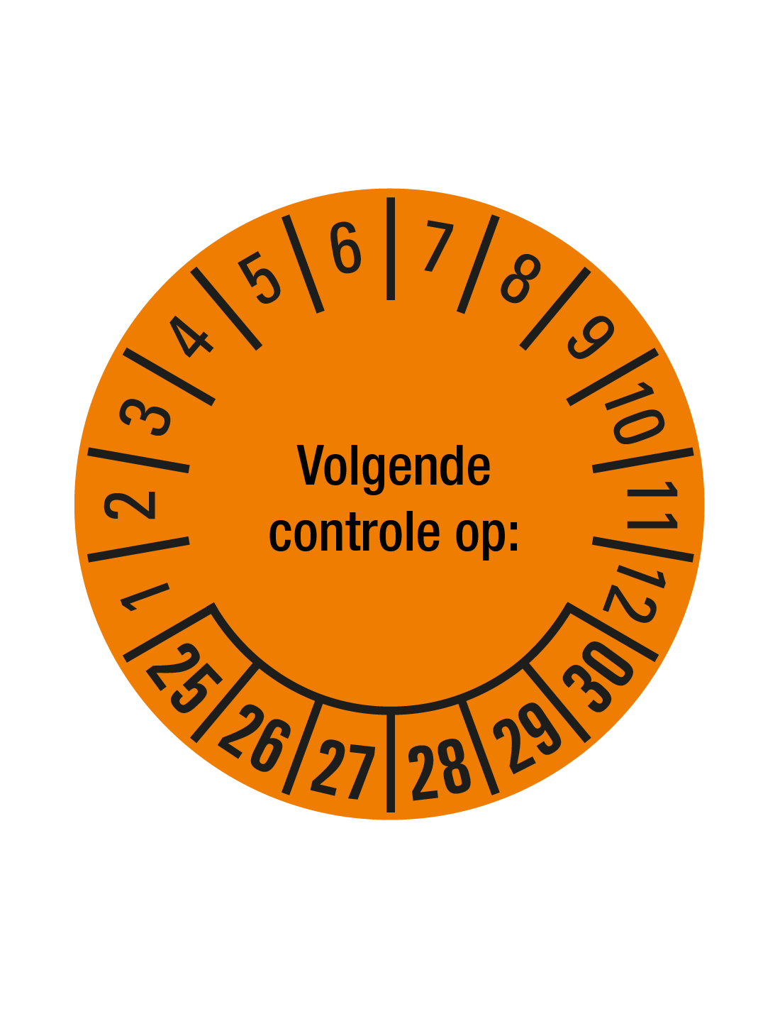 De Volgende controle op sticker 25-30 op vel zijn specifiek ontworpen voor items die gecontroleerd moeten worden tussen 2025 en 2030. Met zijn opvallende oranje en zwarte kleur zijn deze stickers duidelijk zichtbaar en attenderen ze op de noodzaak van een volgende controle. De zelfklevende folie maakt het eenvoudig aan te brengen op diverse oppervlakken, terwijl de levensduur van circa 5 jaar zorgt voor langdurige bruikbaarheid. Hierdoor kunnen organisaties voldoen aan de vereisten en veiligheid.