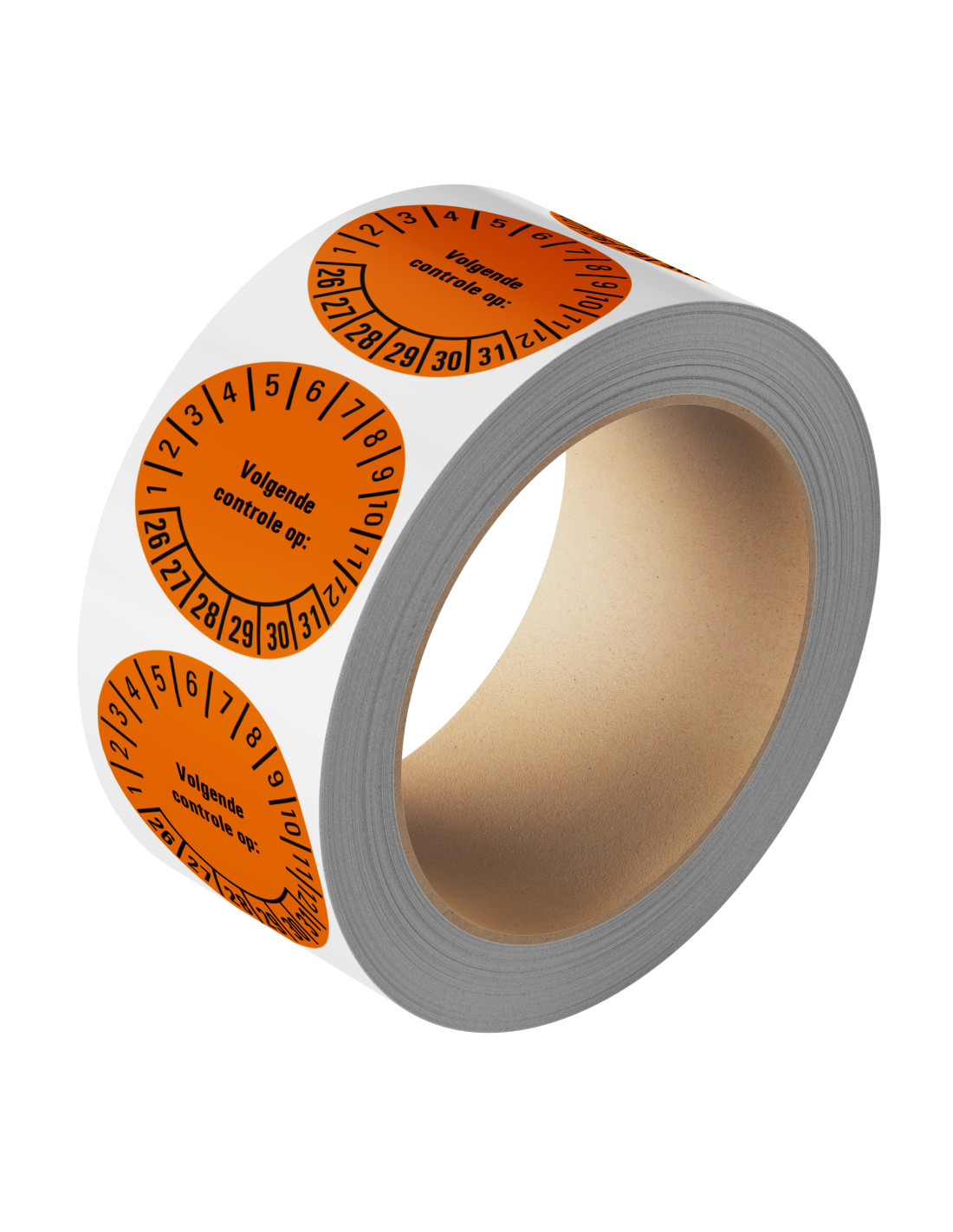 De Volgende controle op sticker 26-31 op rol zijn specifiek ontworpen voor items die gecontroleerd moeten worden tussen 2026 en 2031. Met zijn opvallende oranje en zwarte kleur zijn deze stickers duidelijk zichtbaar en attenderen ze op de noodzaak van een volgende controle. De zelfklevende folie maakt het eenvoudig aan te brengen op diverse oppervlakken, terwijl de levensduur van circa 5 jaar zorgt voor langdurige bruikbaarheid. Hierdoor kunnen organisaties voldoen aan de vereisten en veiligheid.