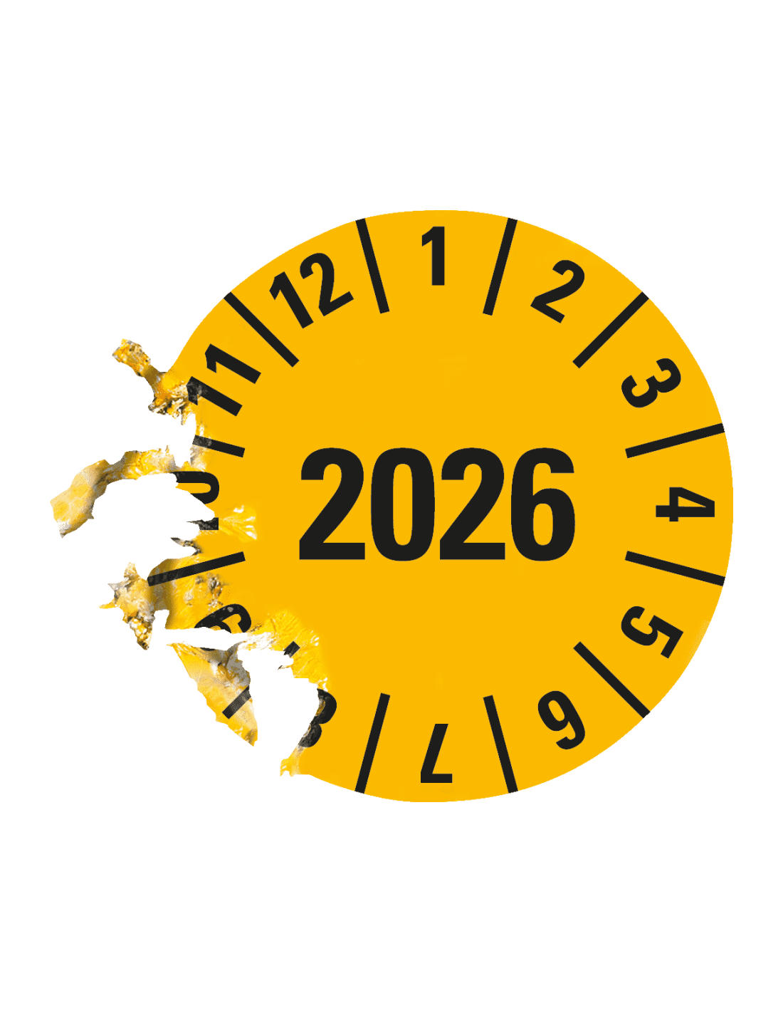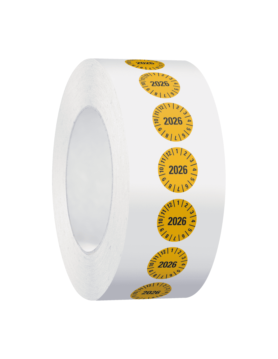 Belangrijkste kenmerken jaartal keuringsstickers 2026 op rol, geel