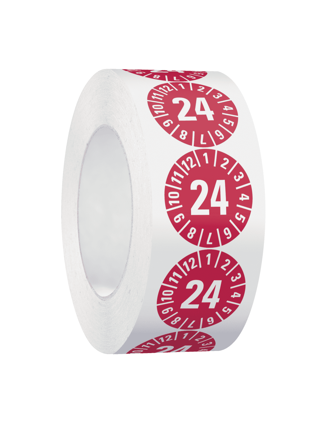 Belangrijkste kenmerken jaartal keuringsstickers 24 op rol, rood