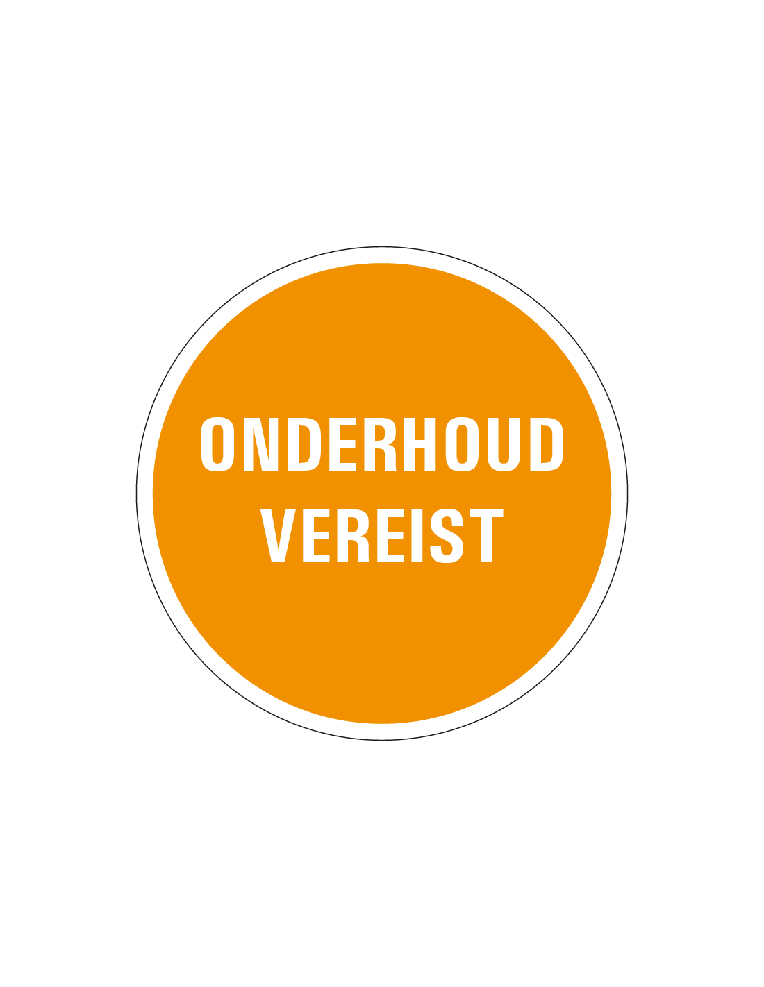 De Onderhoud vereist sticker geeft in één oogopslag duidelijkheid. Dit komt voornamelijk door de oranje kleur. in combinatie met de tekst onderhoud. Dit zal betekenen dat er onderhoud gepleegd moet worden. Hierdoor is het product of apparaat zeer waarschijnlijk nog niet helemaal goed voor gebruik.