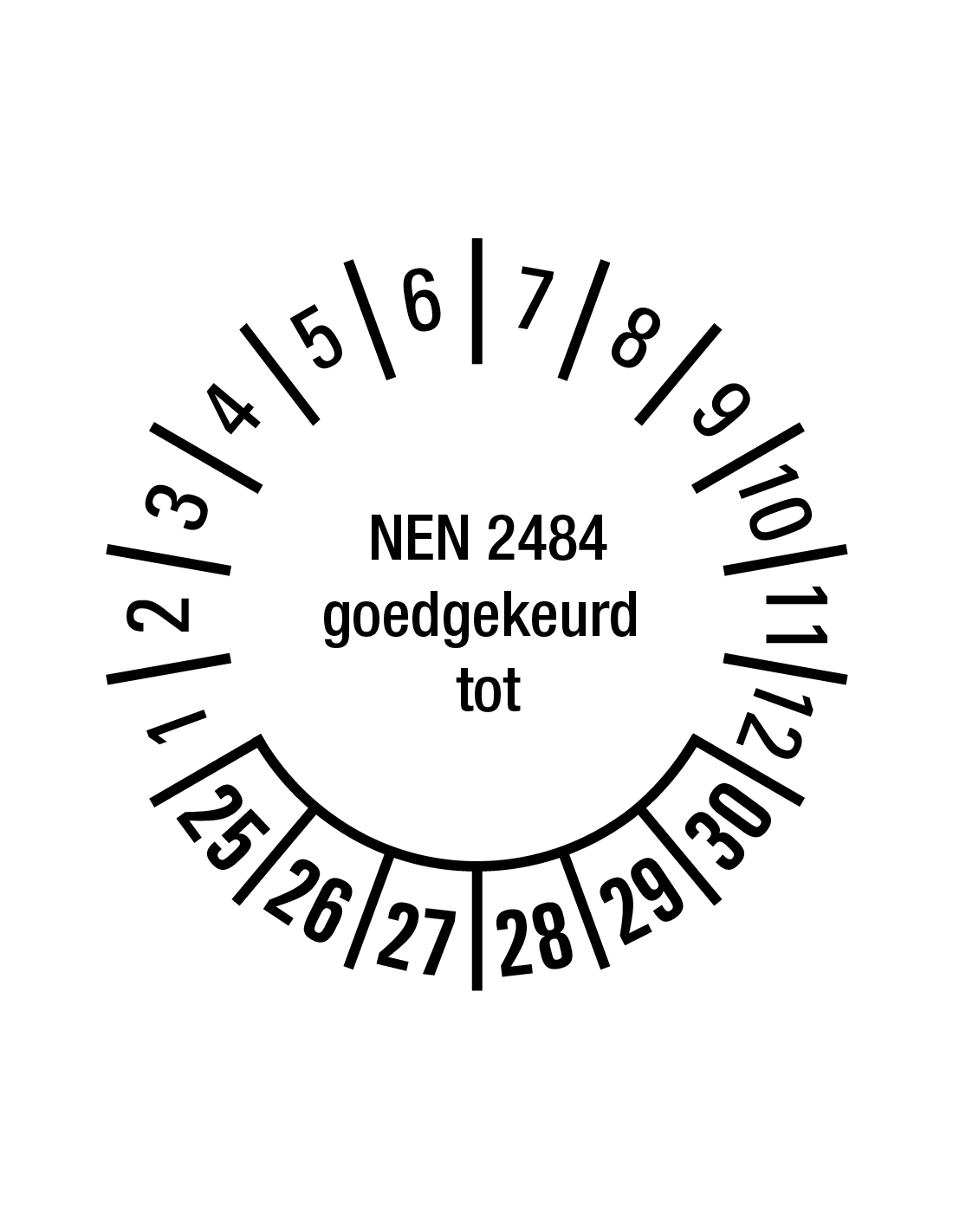 Belangrijkste kenmerken NEN 2484 goedgekeurd tot sticker 25-30 op rol