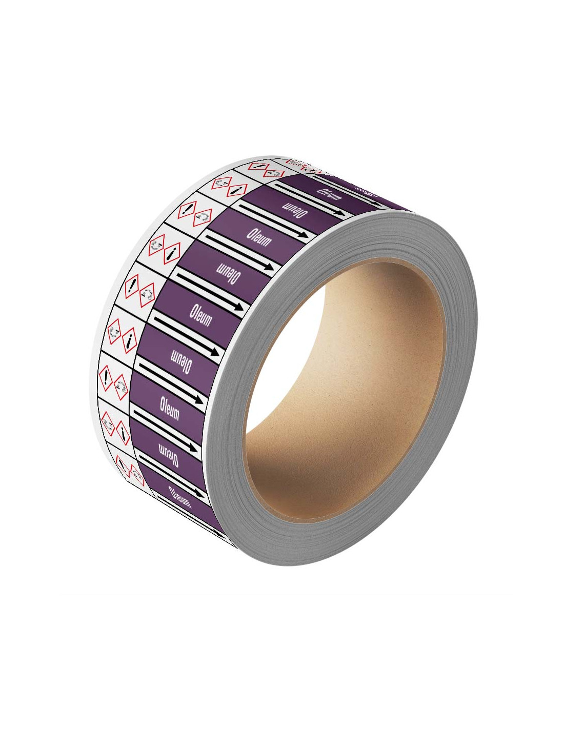 De Oleum leidingmarkering op rol van 25 meter kun je gebruiken om aan te geven dat er in een bepaalde leiding sprake is van basen. In dit geval gaat het om de specifieke aanduiding Oleum. De pijl van de sticker staat altijd dezelfde kant op. Doordat een doorlopende sticker op rol wordt geplaatst en de tekst in twee varianten erop staat is de bepaalde leidingmarkering altijd duidelijk te lezen.