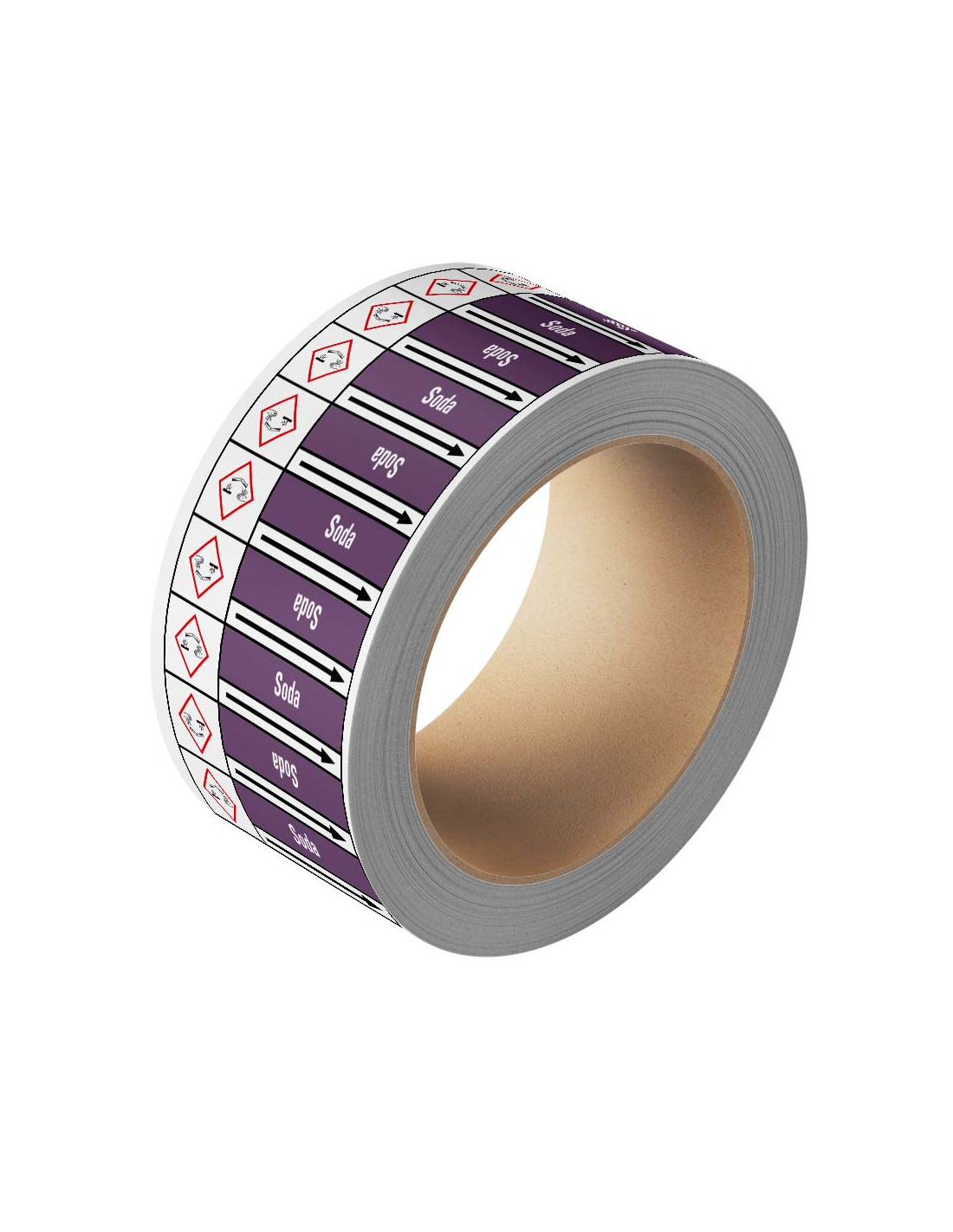 De Soda leidingmarkering op rol van 25 meter kun je gebruiken om aan te geven dat er in een bepaalde leiding sprake is van basen. In dit geval gaat het om de specifieke aanduiding Soda. De pijl van de sticker staat altijd dezelfde kant op. Doordat een doorlopende sticker op rol wordt geplaatst en de tekst in twee varianten erop staat is de bepaalde leidingmarkering altijd duidelijk te lezen.