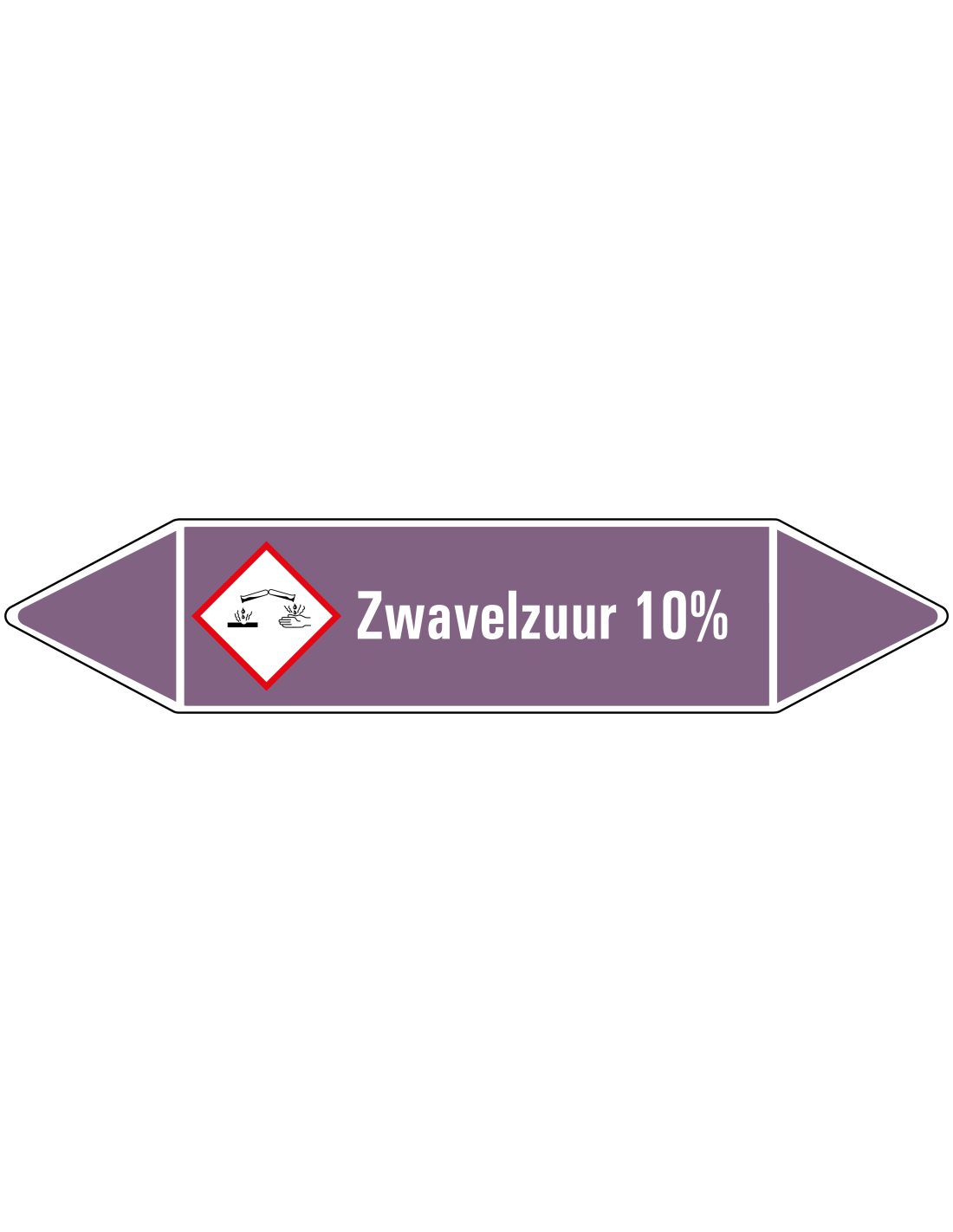 Waar moet ik een leidingmarkering zwavelzuur 10% plaatsen?