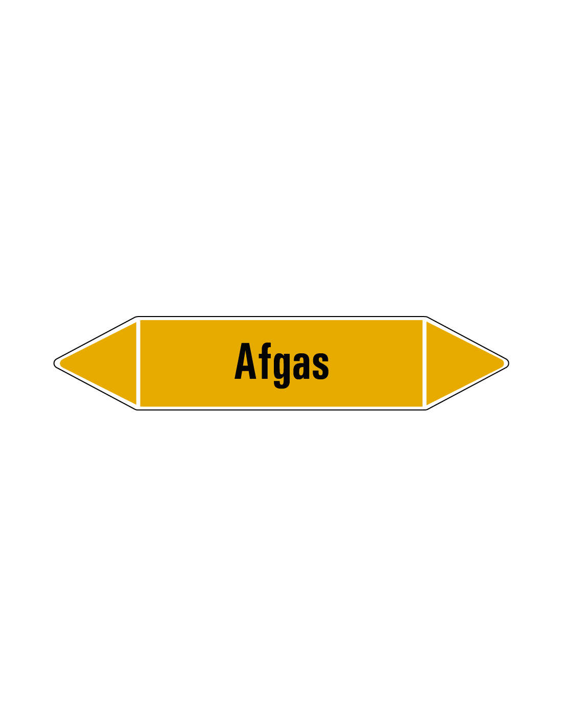 De afgas leidingmarkering op vel wordt gebruikt om aan te geven dat er zich in een bepaalde leiding gas bevindt. In dit geval gaat het om de specifieke aanduiding van afgas. Aan beide kanten van de leidingmarkering zit een stroomrichting uiteinde. Afhankelijk van hoe de de leiding stroomt kan één zijde verwijderd worden.