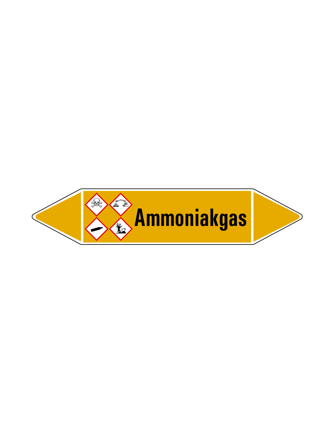 De ammoniakgas leidingmarkering op vel wordt gebruikt om aan te geven dat er zich in een bepaalde leiding gas bevindt. In dit geval gaat het om de specifieke aanduiding van ammoniakgas. Aan beide kanten van de leidingmarkering zit een stroomrichting uiteinde. Afhankelijk van hoe de de leiding stroomt kan één zijde verwijderd worden.