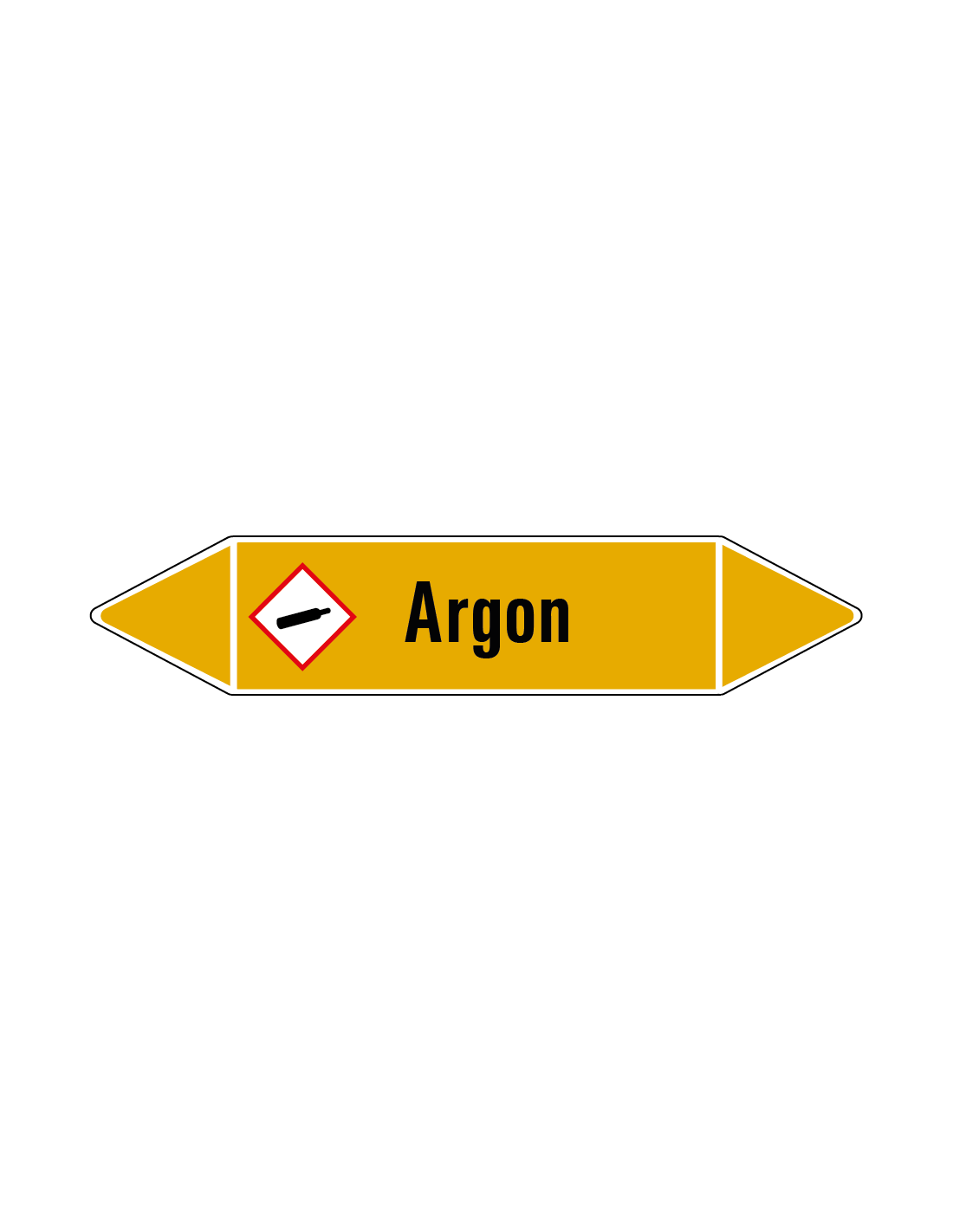 De argon leidingmarkering op vel wordt gebruikt om aan te geven dat er zich in een bepaalde leiding gas bevindt. In dit geval gaat het om de specifieke aanduiding van argon. Aan beide kanten van de leidingmarkering zit een stroomrichting uiteinde. Afhankelijk van hoe de de leiding stroomt kan één zijde verwijderd worden.