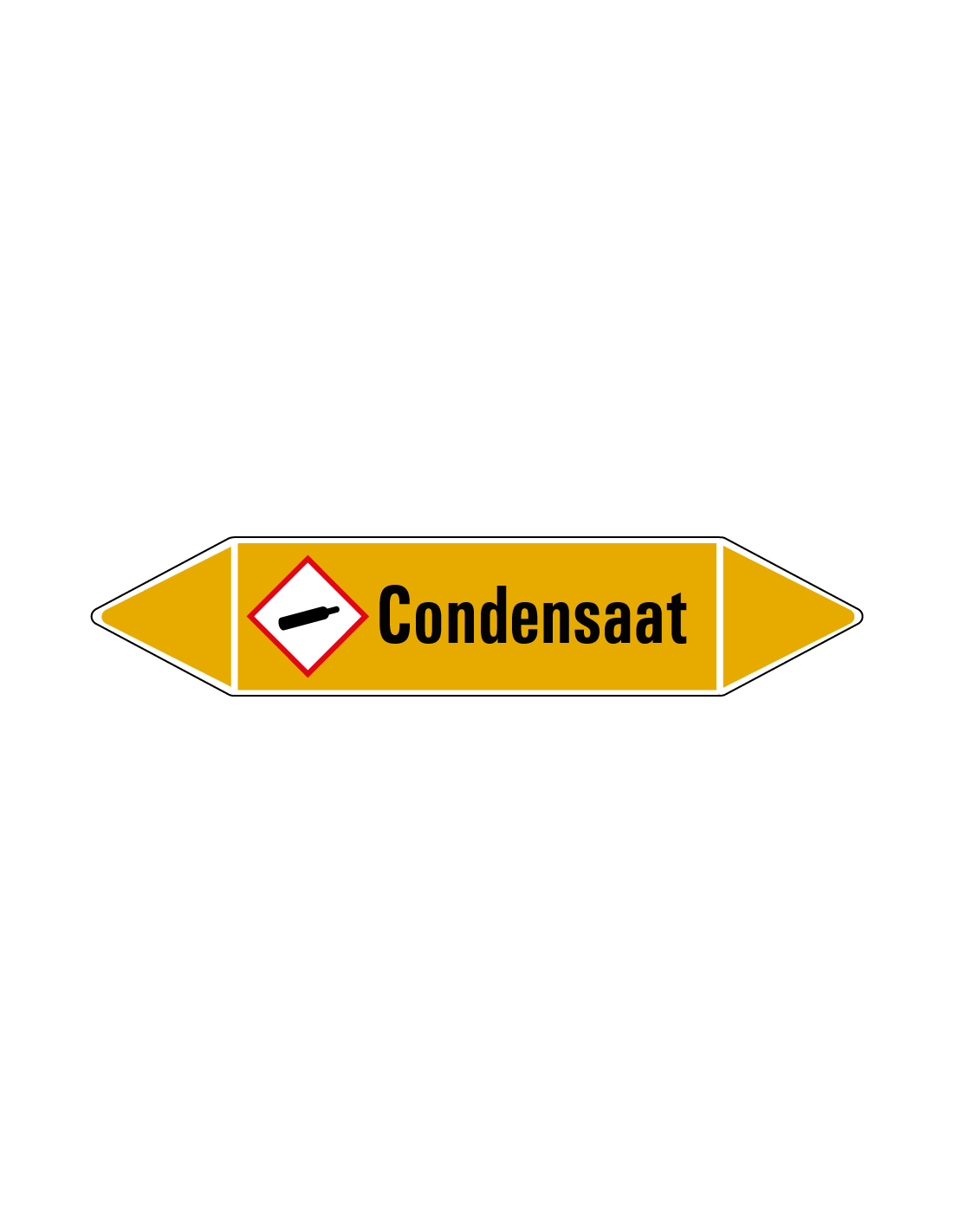 De condensaat leidingmarkering op vel wordt gebruikt om aan te geven dat er zich in een bepaalde leiding gas bevindt. In dit geval gaat het om de specifieke aanduiding van condensaat. Aan beide kanten van de leidingmarkering zit een stroomrichting uiteinde. Afhankelijk van hoe de de leiding stroomt kan één zijde verwijderd worden.