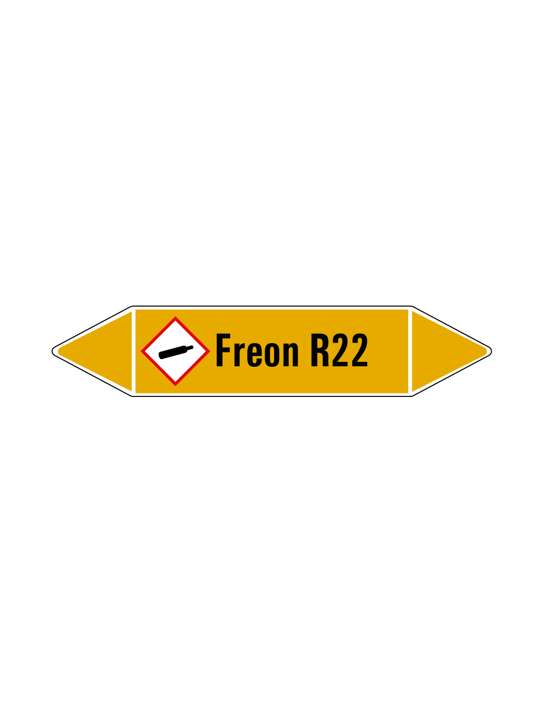De freon R22 leidingmarkering op vel wordt gebruikt om aan te geven dat er zich in een bepaalde leiding gas bevindt. In dit geval gaat het om de specifieke aanduiding van freon R22. Aan beide kanten van de leidingmarkering zit een stroomrichting uiteinde. Afhankelijk van hoe de de leiding stroomt kan één zijde verwijderd worden.