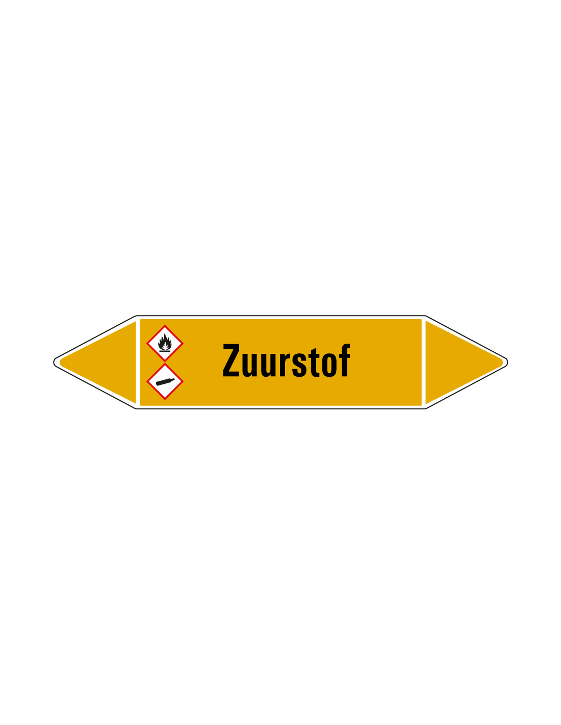 De zuurstof leidingmarkering op vel wordt gebruikt om aan te geven dat er zich in een bepaalde leiding gas bevindt. In dit geval gaat het om de specifieke aanduiding van zuurstof. Aan beide kanten van de leidingmarkering zit een stroomrichting uiteinde. Afhankelijk van hoe de de leiding stroomt kan één zijde verwijderd worden.
