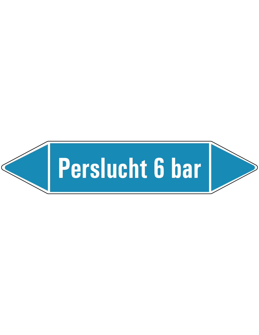 De perslucht 6 bar leidingmarkering op vel wordt gebruikt om aan te geven dat er zich in een bepaalde leiding lucht bevindt. In dit geval gaat het om de specifieke aanduiding van perslucht 6 bar. Aan beide kanten van de leidingmarkering zit een stroomrichting uiteinde. Afhankelijk van hoe de de leiding stroomt kan één zijde verwijderd worden.