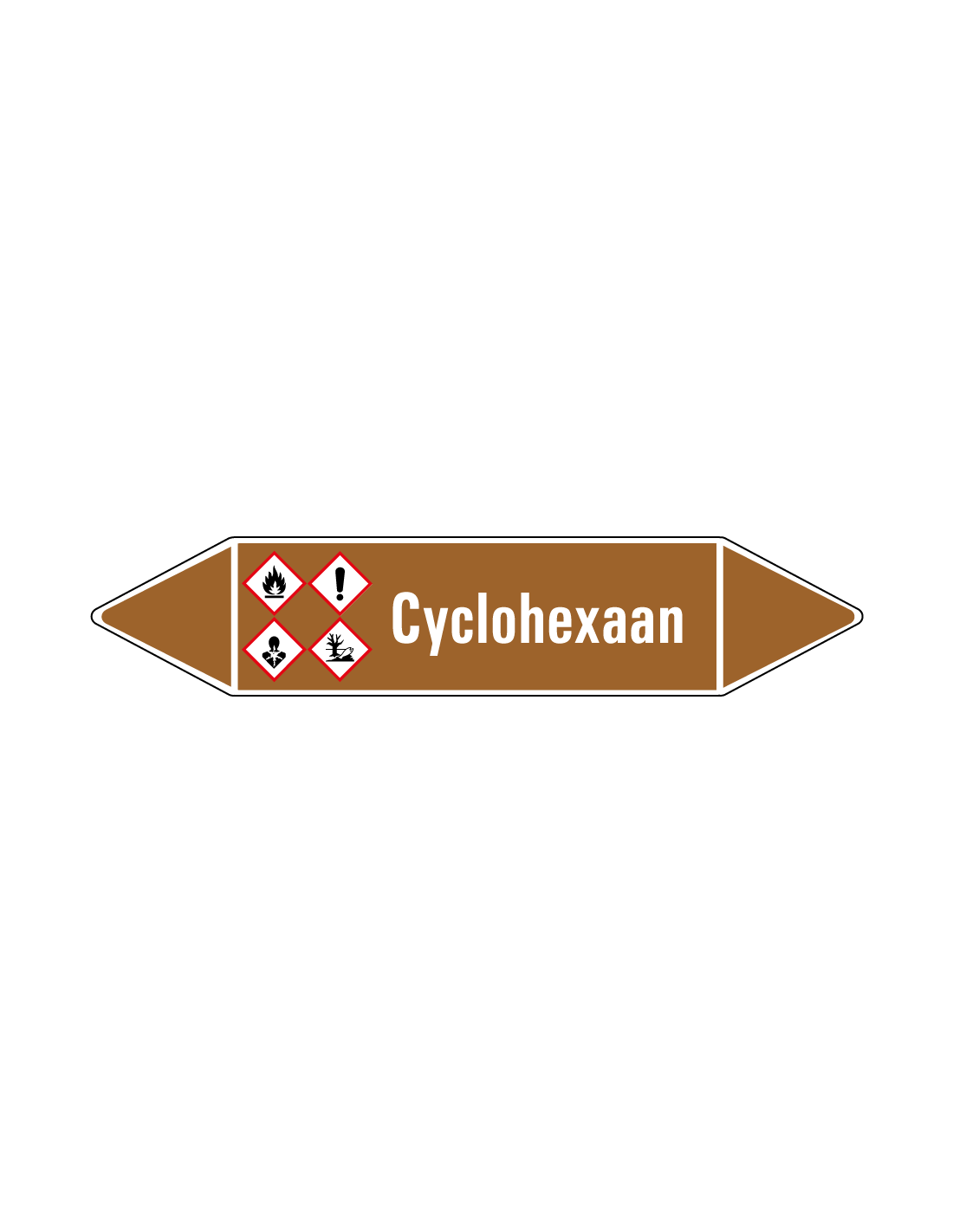 De Cyclohexaan leidingmarkering op rol van 25 meter kun je gebruiken om aan te geven dat er in een bepaalde leiding sprake is van ontvlambare vloeistoffen. In dit geval gaat het om de specifieke aanduiding Cyclohexaan. De pijl van de sticker staat altijd dezelfde kant op. Doordat een doorlopende sticker op rol wordt geplaatst en de tekst in twee varianten erop staat is de bepaalde leidingmarkering altijd duidelijk te lezen.