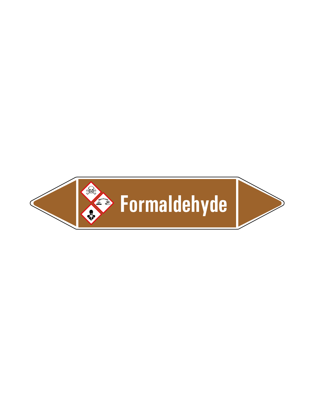 De formaldehyde leidingmarkering op vel wordt gebruikt om aan te geven dat er zich in een bepaalde leiding een ontvlambare vloeistof bevindt. In dit geval gaat het om de specifieke aanduiding van formaldehyde. Aan beide kanten van de leidingmarkering zit een stroomrichting uiteinde. Afhankelijk van hoe de de leiding stroomt kan één zijde verwijderd worden.