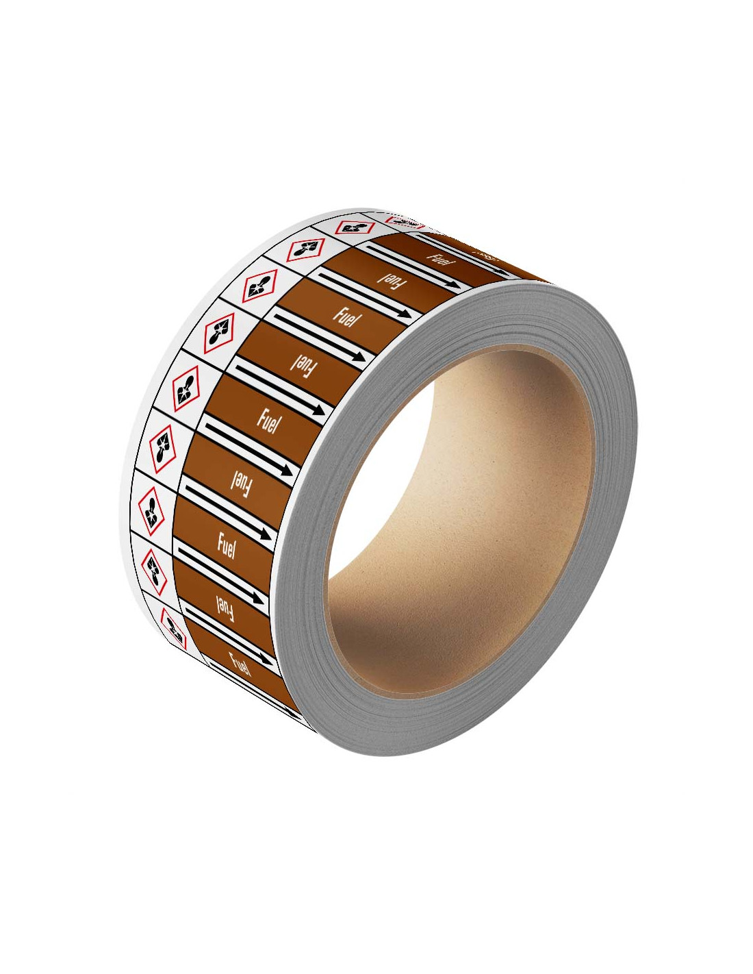 De Fuel leidingmarkering op rol van 25 meter kun je gebruiken om aan te geven dat er in een bepaalde leiding sprake is van ontvlambare vloeistoffen. In dit geval gaat het om de specifieke aanduiding Fuel. De pijl van de sticker staat altijd dezelfde kant op. Doordat een doorlopende sticker op rol wordt geplaatst en de tekst in twee varianten erop staat is de bepaalde leidingmarkering altijd duidelijk te lezen.
