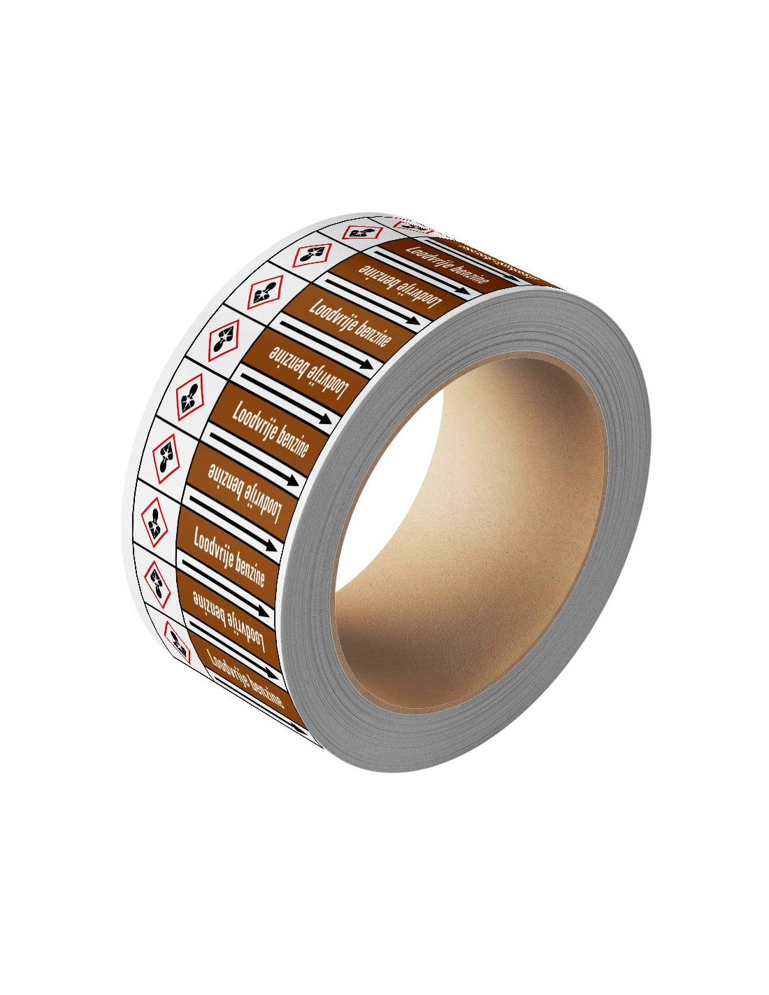 De Loodvrije benzine leidingmarkering op rol van 25 meter kun je gebruiken om aan te geven dat er in een bepaalde leiding sprake is van ontvlambare vloeistoffen. In dit geval gaat het om de specifieke aanduiding Loodvrije benzine. De pijl van de sticker staat altijd dezelfde kant op. Doordat een doorlopende sticker op rol wordt geplaatst en de tekst in twee varianten erop staat is de bepaalde leidingmarkering altijd duidelijk te lezen.