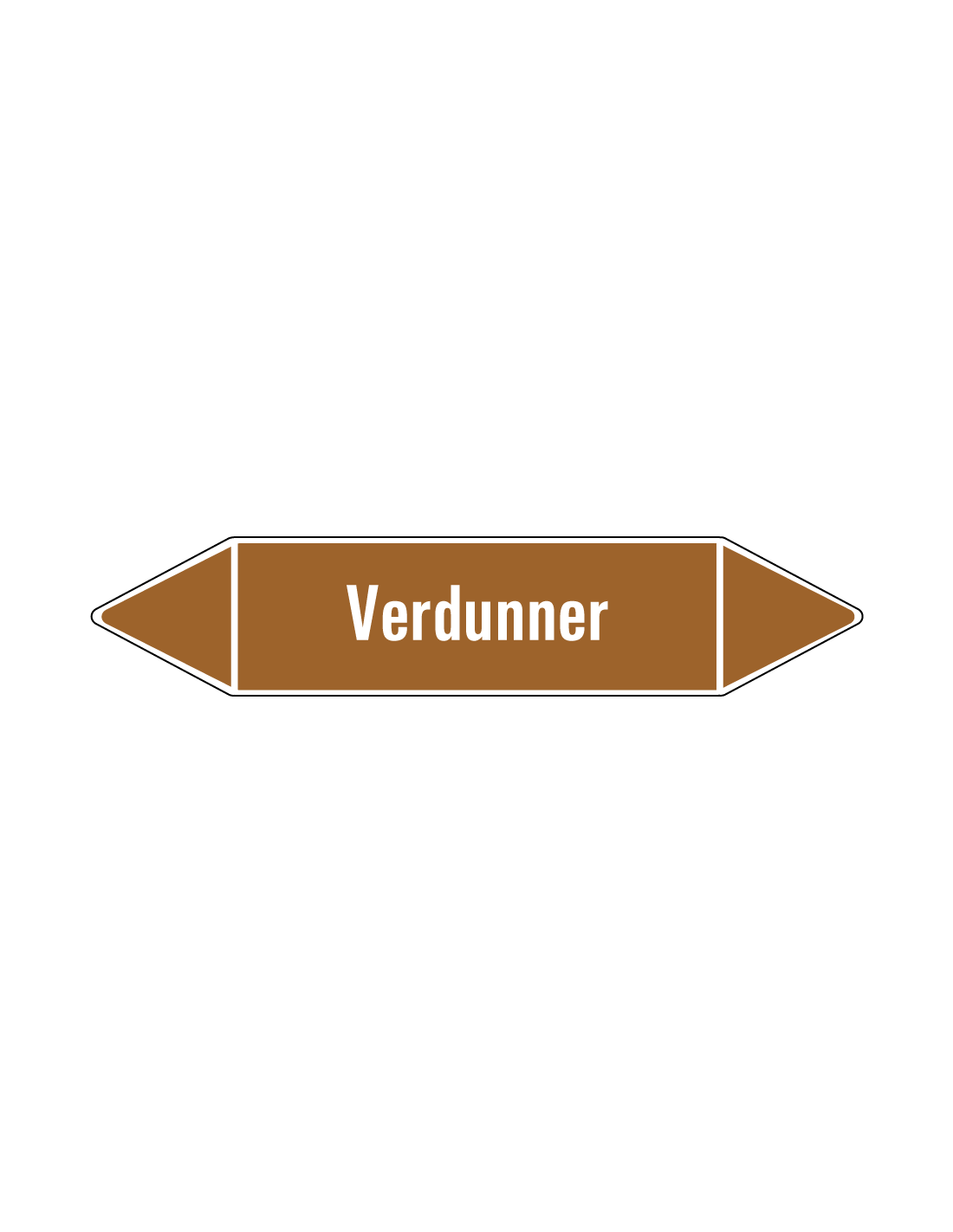 De verdunner leidingmarkering op vel wordt gebruikt om aan te geven dat er zich in een bepaalde leiding een ontvlambare vloeistof bevindt. In dit geval gaat het om de specifieke aanduiding van verdunner. Aan beide kanten van de leidingmarkering zit een stroomrichting uiteinde. Afhankelijk van hoe de de leiding stroomt kan één zijde verwijderd worden.