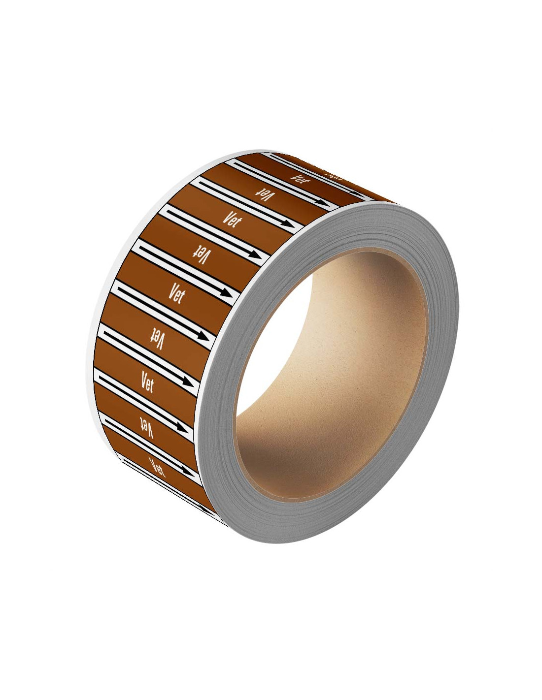 Deze leidingmarkering Vet is verkrijgbaar in vier verschillende afmetingen met elk 25 meter aan sticker op rol. Deze stickers hebben een maximale lengte 480 millimeter. Is de leiding breder of groter dan een omtrek van 480 millimeter? Dan kan je eenvoudig nog een (deel) sticker erbij plakken om de leiding helemaal rond te voorzien van de desbetreffende leidingmarkering. De sticker is resistent tegen lichte chemicaliën en temperatuurbestendig van -20 tot + 80 °C. Verder hecht de sticker het beste op een effen en vetvrije ondergrond.