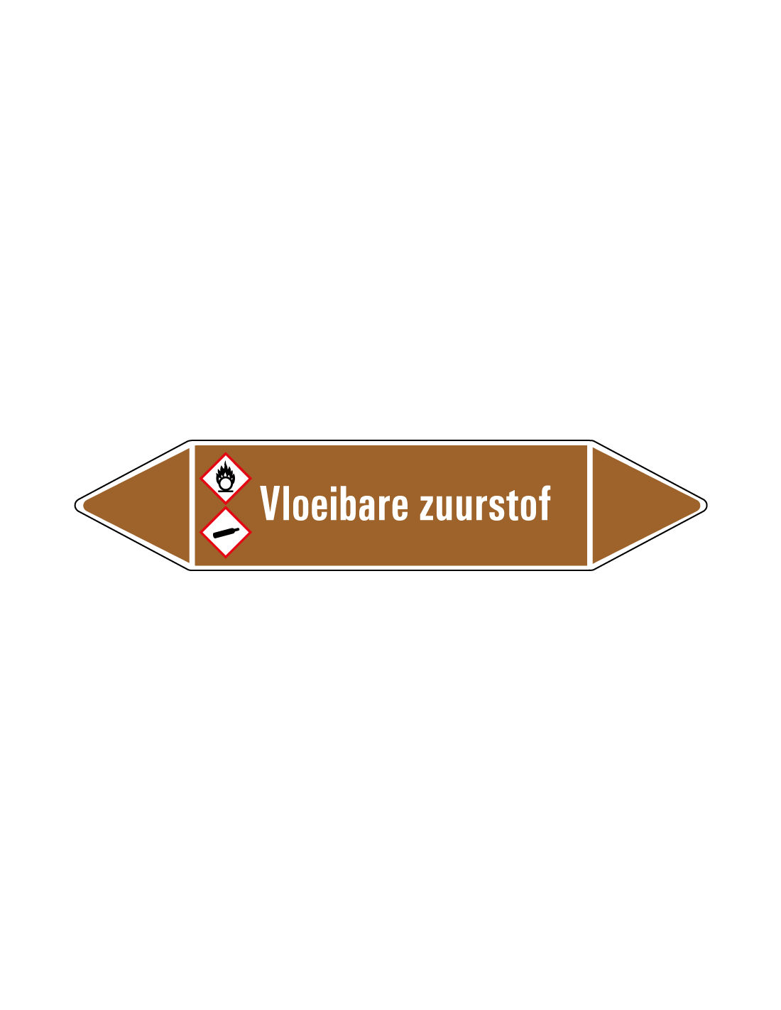 Deze leidingmarkering vloeibare zuurstof is verkrijgbaar in verschillende afmetingen met verschillende aantallen op vel. De sticker is resistent tegen lichte chemicaliën en temperatuurbestendig van -20 tot + 70 °C. Verder hecht de sticker het beste op een effen en vetvrije ondergrond.