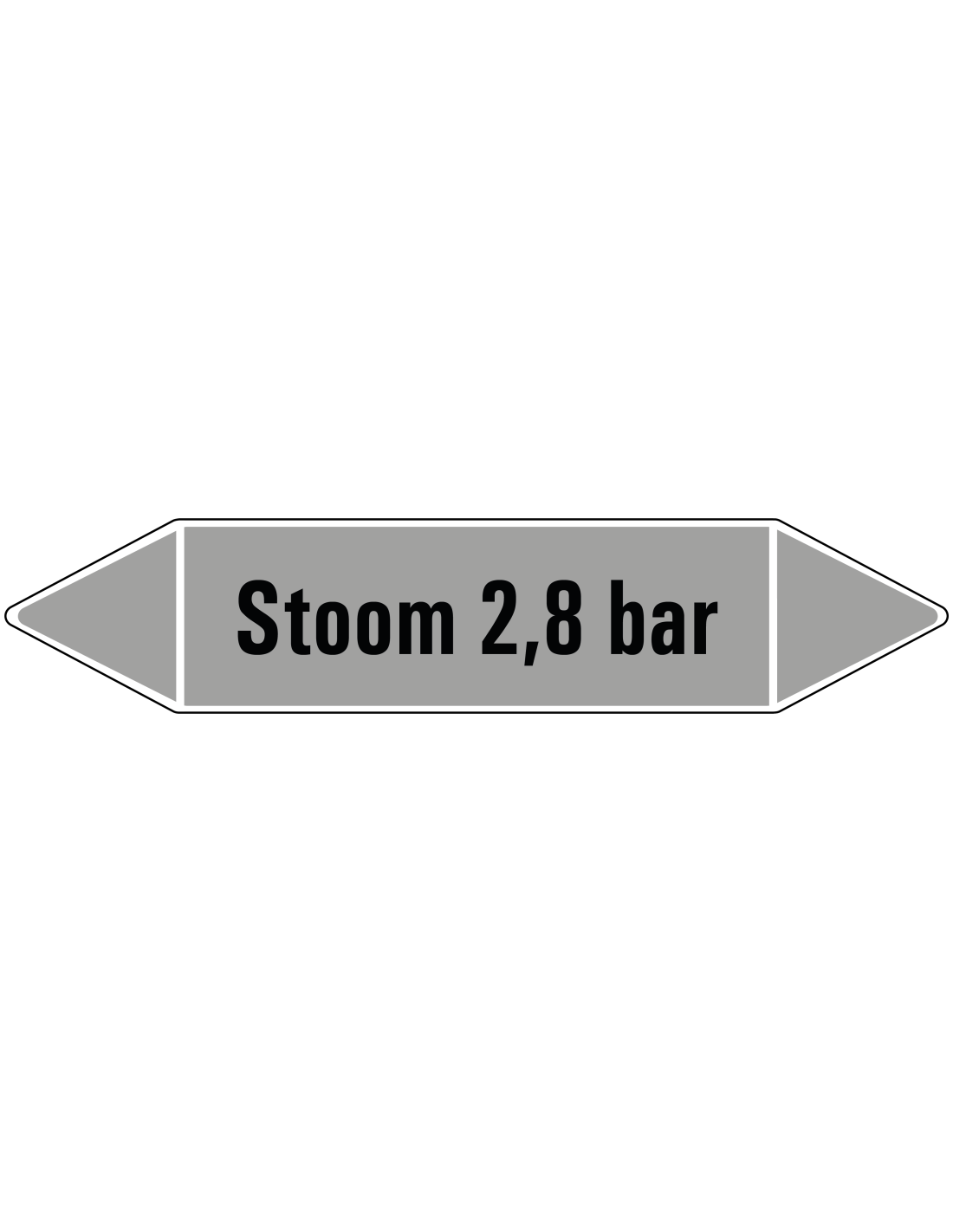 De stoom 2,8 bar leidingmarkering op vel wordt gebruikt om aan te geven dat er zich in een bepaalde leiding stoom bevindt. In dit geval gaat het om de specifieke aanduiding van stoom 2,8 bar. Aan beide kanten van de leidingmarkering zit een stroomrichting uiteinde. Afhankelijk van hoe de de leiding stroomt kan één zijde verwijderd worden.