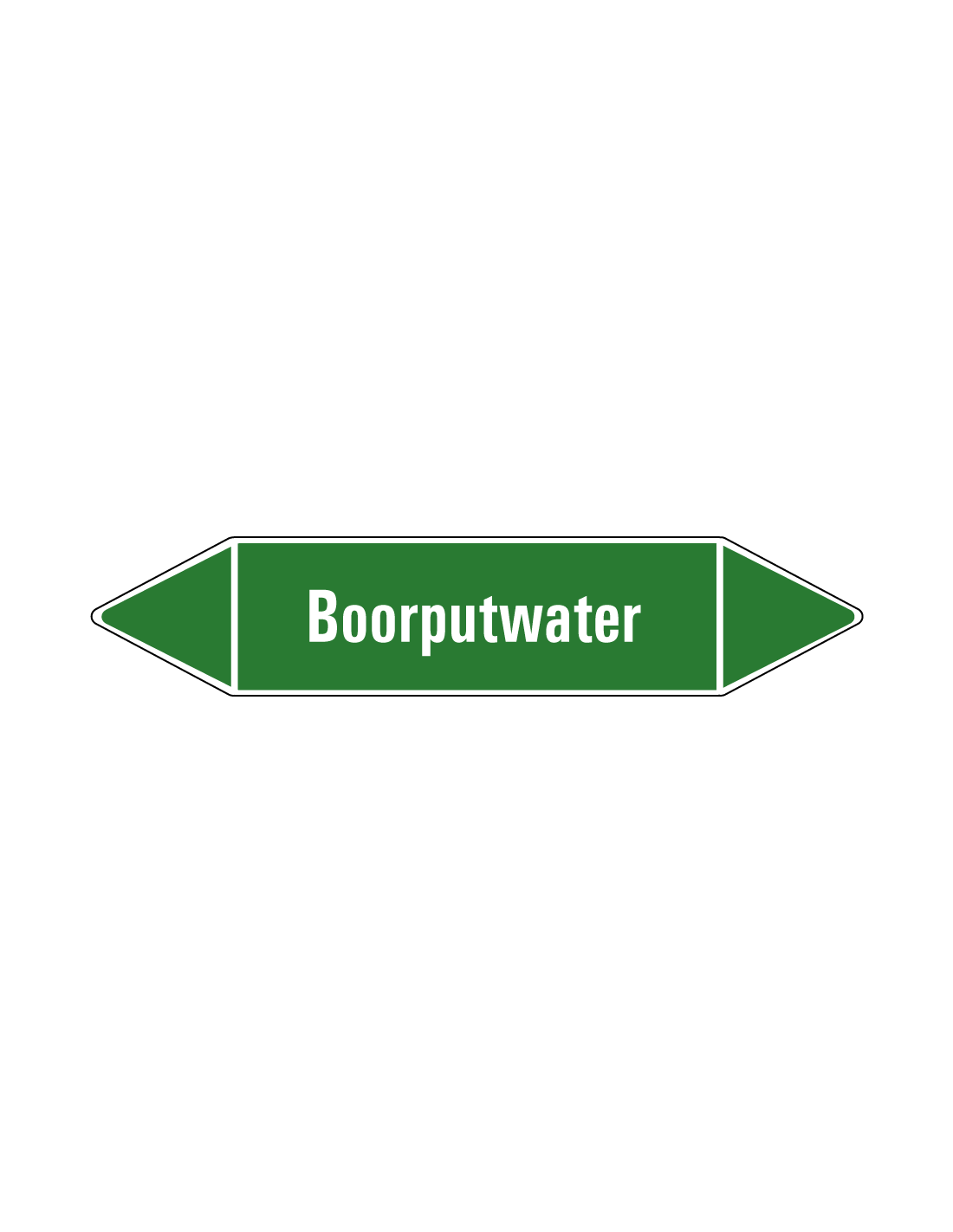 De boorputwater leidingmarkering op vel wordt gebruikt om aan te geven dat er in een bepaalde leiding water stroomt. In dit geval gaat het om de specifieke aanduiding van boorputwater. Aan beide kanten van de leidingmarkering zit een stroomrichting uiteinde. Afhankelijk van hoe de de leiding stroomt kan één zijde verwijderd worden.