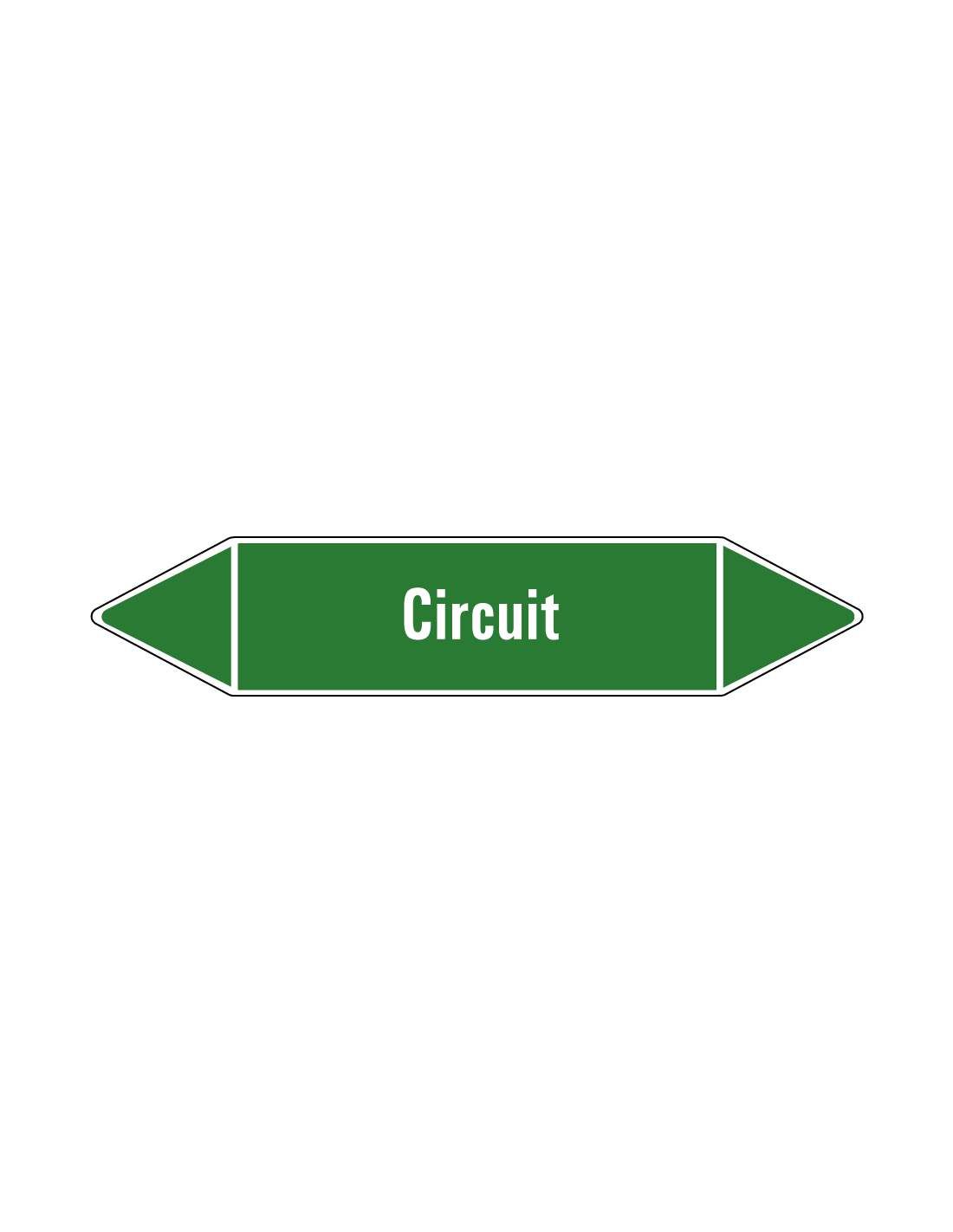 De circuit leidingmarkering op vel wordt gebruikt om aan te geven dat er in een bepaalde leiding water stroomt. In dit geval gaat het om de specifieke aanduiding circuit. Aan beide kanten van de leidingmarkering zit een stroomrichting uiteinde. Afhankelijk van hoe de de leiding stroomt kan één zijde verwijderd worden.