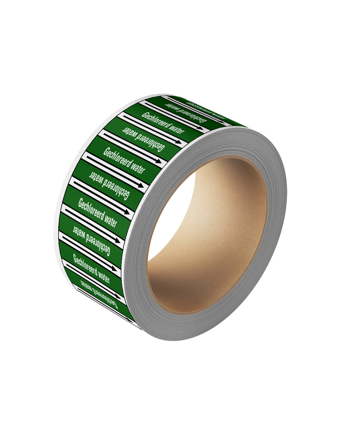 De gechloreerd water leidingmarkering op rol van 25 meter wordt gebruikt om aan te geven dat er in een bepaalde leiding water stroomt. In dit geval gaat het om de specifieke aanduiding gechloreerd water. De pijl van de staat altijd dezelfde kant op. Doordat een doorlopende sticker op rol wordt geplaatst en de tekst in twee varianten erop staat is de bepaalde leidingmarkering altijd duidelijk te lezen.