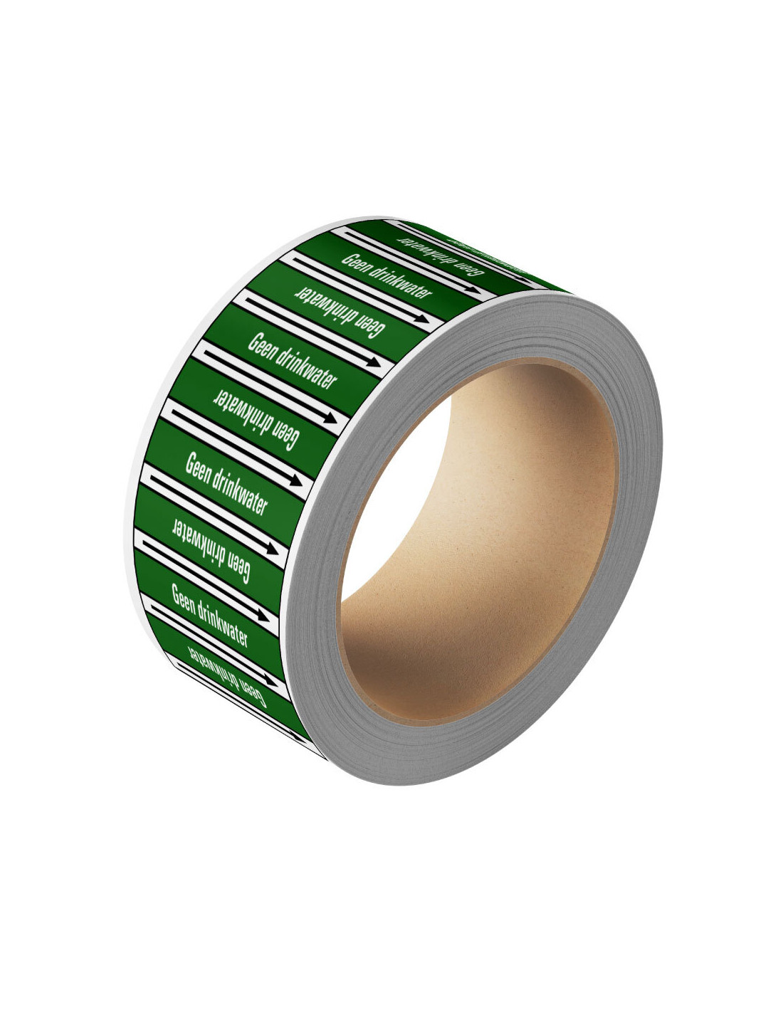 De geen drinkwater leidingmarkering op rol van 25 meter wordt gebruikt om aan te geven dat er in een bepaalde leiding water stroomt. In dit geval gaat het om de specifieke aanduiding geen drinkwater. De pijl van de staat altijd dezelfde kant op. Doordat een doorlopende sticker op rol wordt geplaatst en de tekst in twee varianten erop staat is de bepaalde leidingmarkering altijd duidelijk te lezen.
