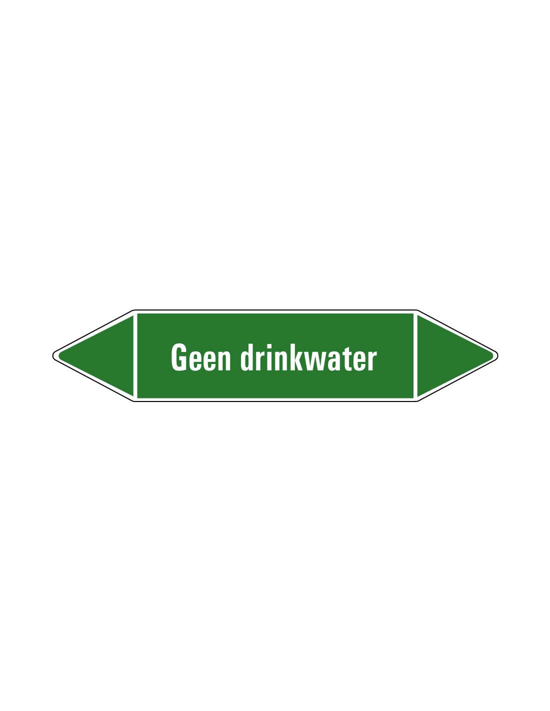 De geen drinkwater leidingmarkering op vel wordt gebruikt om aan te geven dat er in een bepaalde leiding water stroomt. In dit geval gaat het om de specifieke aanduiding geen drinkwater. Aan beide kanten van de leidingmarkering zit een stroomrichting uiteinde. Afhankelijk van hoe de de leiding stroomt kan één zijde verwijderd worden.