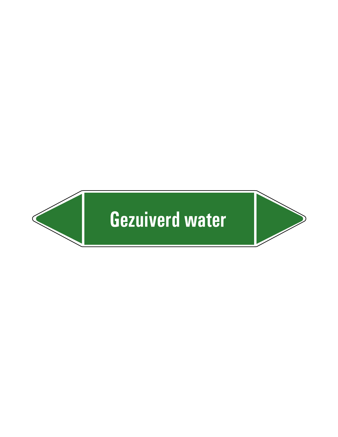 De gezuiverd water leidingmarkering op vel wordt gebruikt om aan te geven dat er in een bepaalde leiding water stroomt. In dit geval gaat het om de specifieke aanduiding van gezuiverd water. Aan beide kanten van de leidingmarkering zit een stroomrichting uiteinde. Afhankelijk van hoe de de leiding stroomt kan één zijde verwijderd worden.