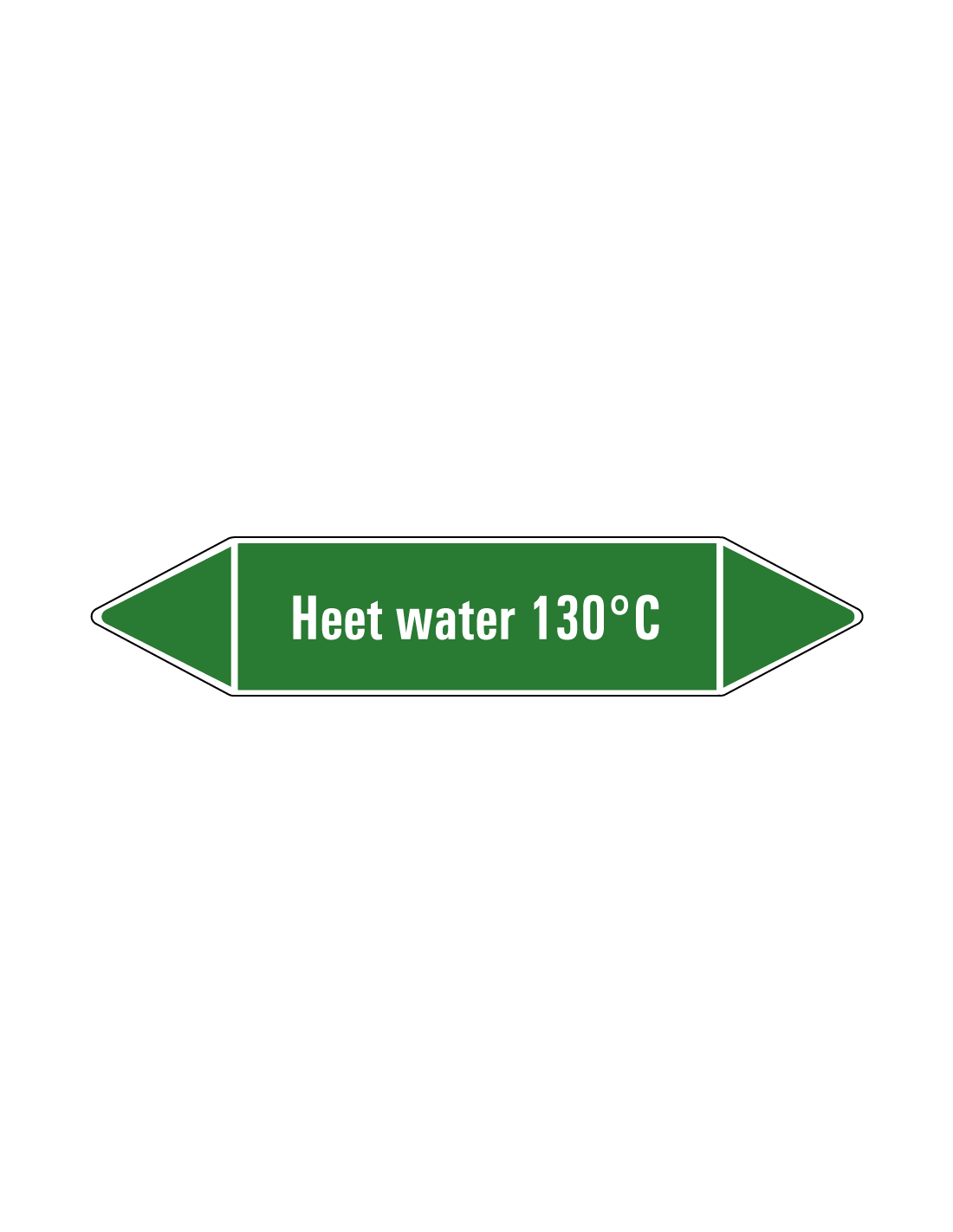 De heet water 130°C leidingmarkering op vel wordt gebruikt om aan te geven dat er in een bepaalde leiding water stroomt. In dit geval gaat het om de specifieke aanduiding heet water met een temperatuur van 130°C. Aan beide kanten van de leidingmarkering zit een stroomrichting uiteinde. Afhankelijk van hoe de de leiding stroomt kan één zijde verwijderd worden.