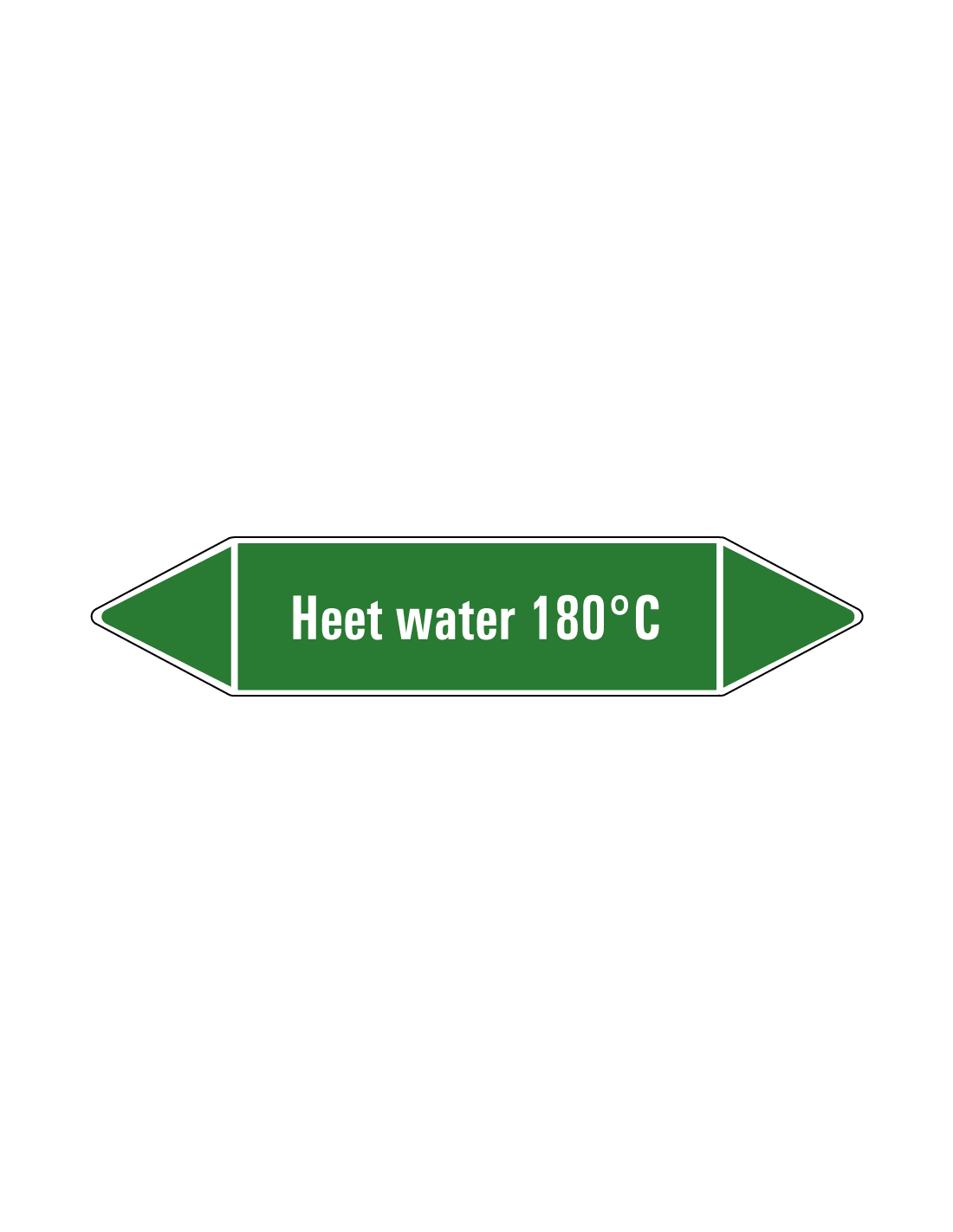 De heet water 180°C leidingmarkering op vel wordt gebruikt om aan te geven dat er in een bepaalde leiding water stroomt. In dit geval gaat het om de specifieke aanduiding heet water met een temperatuur van 180°C. Aan beide kanten van de leidingmarkering zit een stroomrichting uiteinde. Afhankelijk van hoe de de leiding stroomt kan één zijde verwijderd worden.