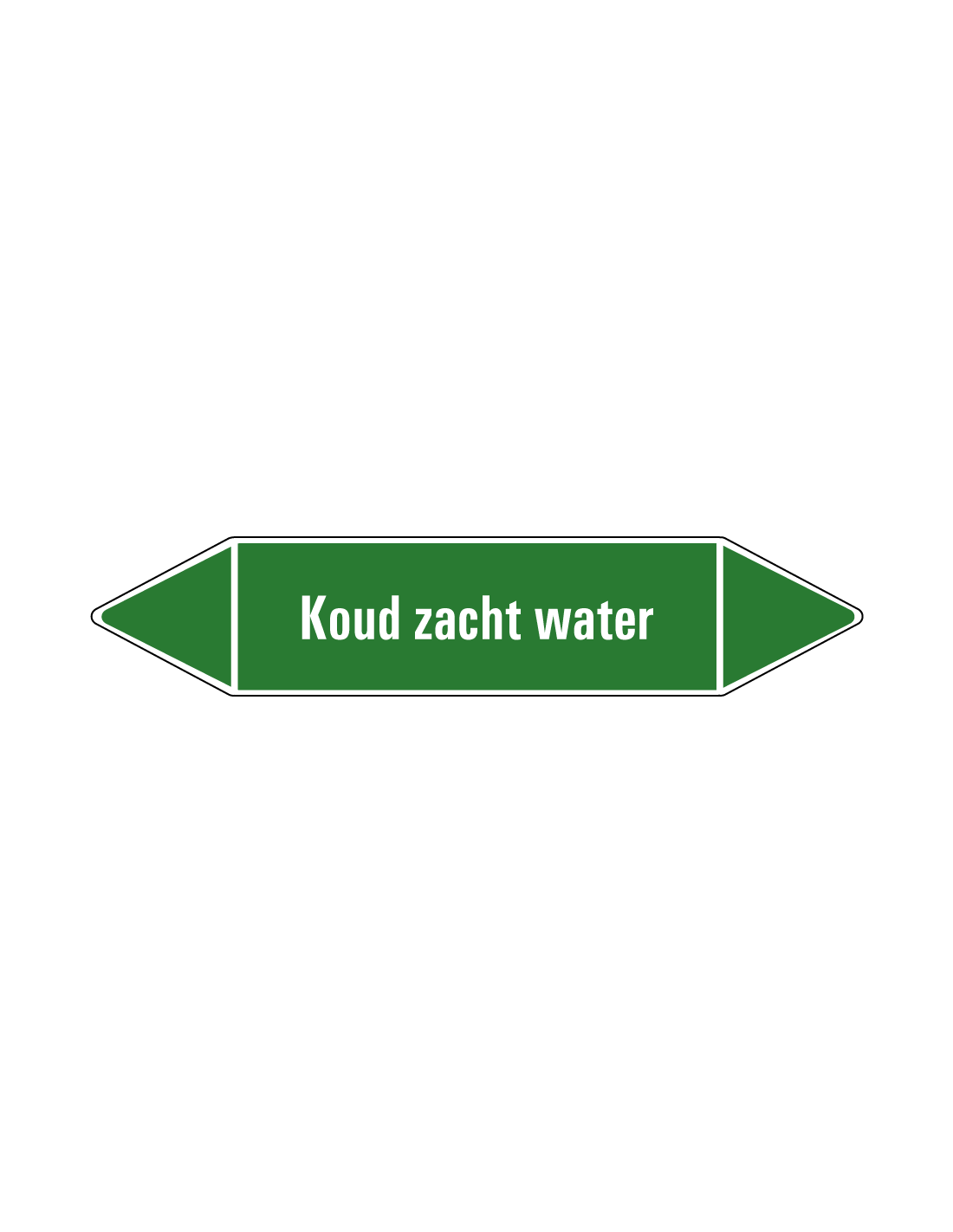 De koud zacht water leidingmarkering op vel wordt gebruikt om aan te geven dat er in een bepaalde leiding water stroomt. In dit geval gaat het om de specifieke aanduiding van koud zacht water. Aan beide kanten van de leidingmarkering zit een stroomrichting uiteinde. Afhankelijk van hoe de de leiding stroomt kan één zijde verwijderd worden.