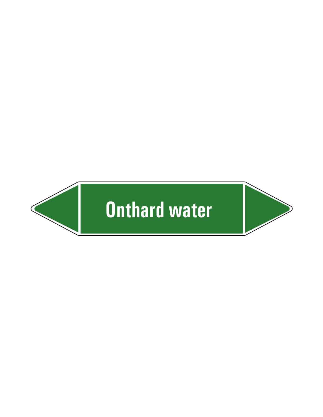 De onthard water leidingmarkering op vel wordt gebruikt om aan te geven dat er in een bepaalde leiding water stroomt. In dit geval gaat het om de specifieke aanduiding onthard water. Aan beide kanten van de leidingmarkering zit een stroomrichting uiteinde. Afhankelijk van hoe de de leiding stroomt kan één zijde verwijderd worden.