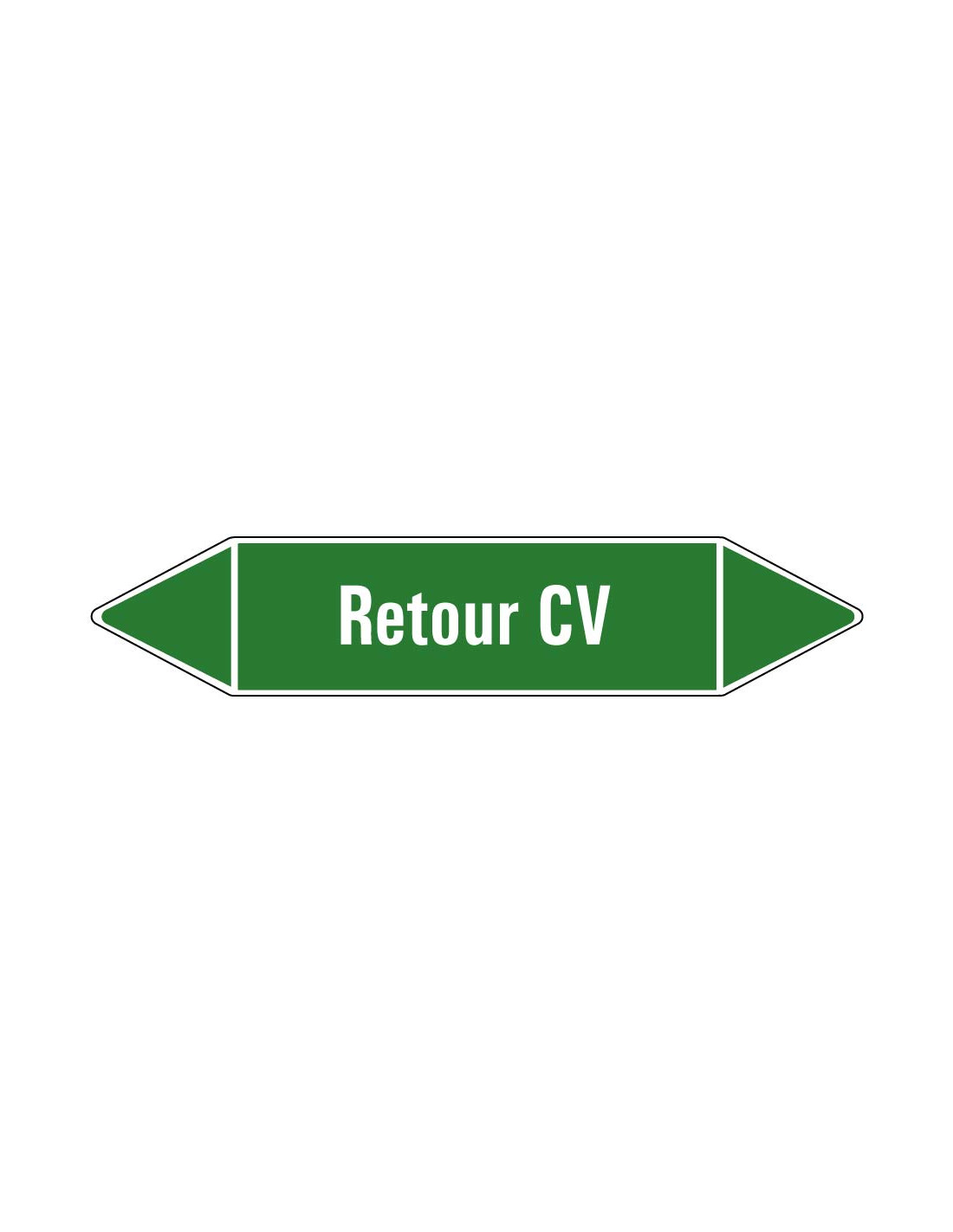 De retour CV leidingmarkering op vel wordt gebruikt om aan te geven dat er in een bepaalde leiding water stroomt. In dit geval gaat het om de specifieke aanduiding retour CV. Aan beide kanten van de leidingmarkering zit een stroomrichting uiteinde. Afhankelijk van hoe de de leiding stroomt kan één zijde verwijderd worden.