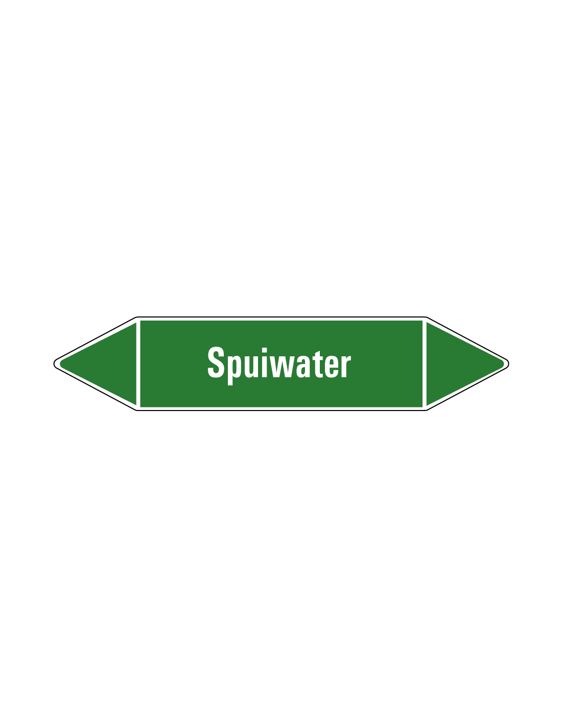 De spuiwater leidingmarkering op vel wordt gebruikt om aan te geven dat er in een bepaalde leiding water stroomt. In dit geval gaat het om de specifieke aanduiding spuiwater. Aan beide kanten van de leidingmarkering zit een stroomrichting uiteinde. Afhankelijk van hoe de de leiding stroomt kan één zijde verwijderd worden.