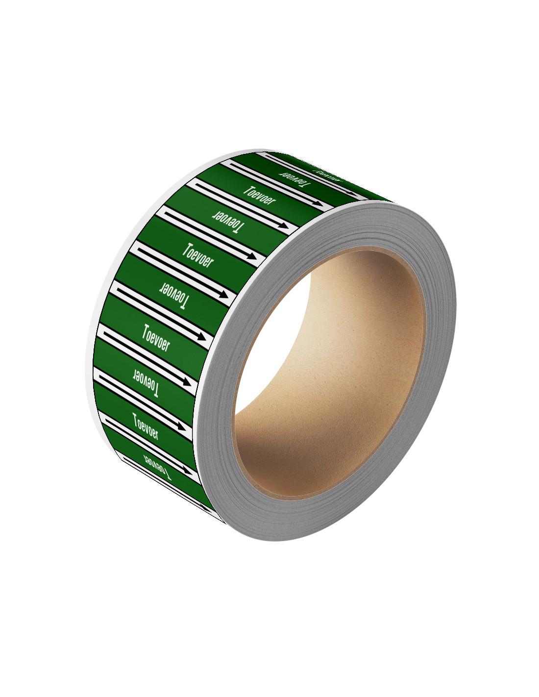De toevoer leidingmarkering op rol van 25 meter wordt gebruikt om aan te geven dat er in een bepaalde leiding water stroomt. In dit geval gaat het om de specifieke aanduiding toevoer. De pijl van de staat altijd dezelfde kant op. Doordat een doorlopende sticker op rol wordt geplaatst en de tekst in twee varianten erop staat is de bepaalde leidingmarkering altijd duidelijk te lezen.