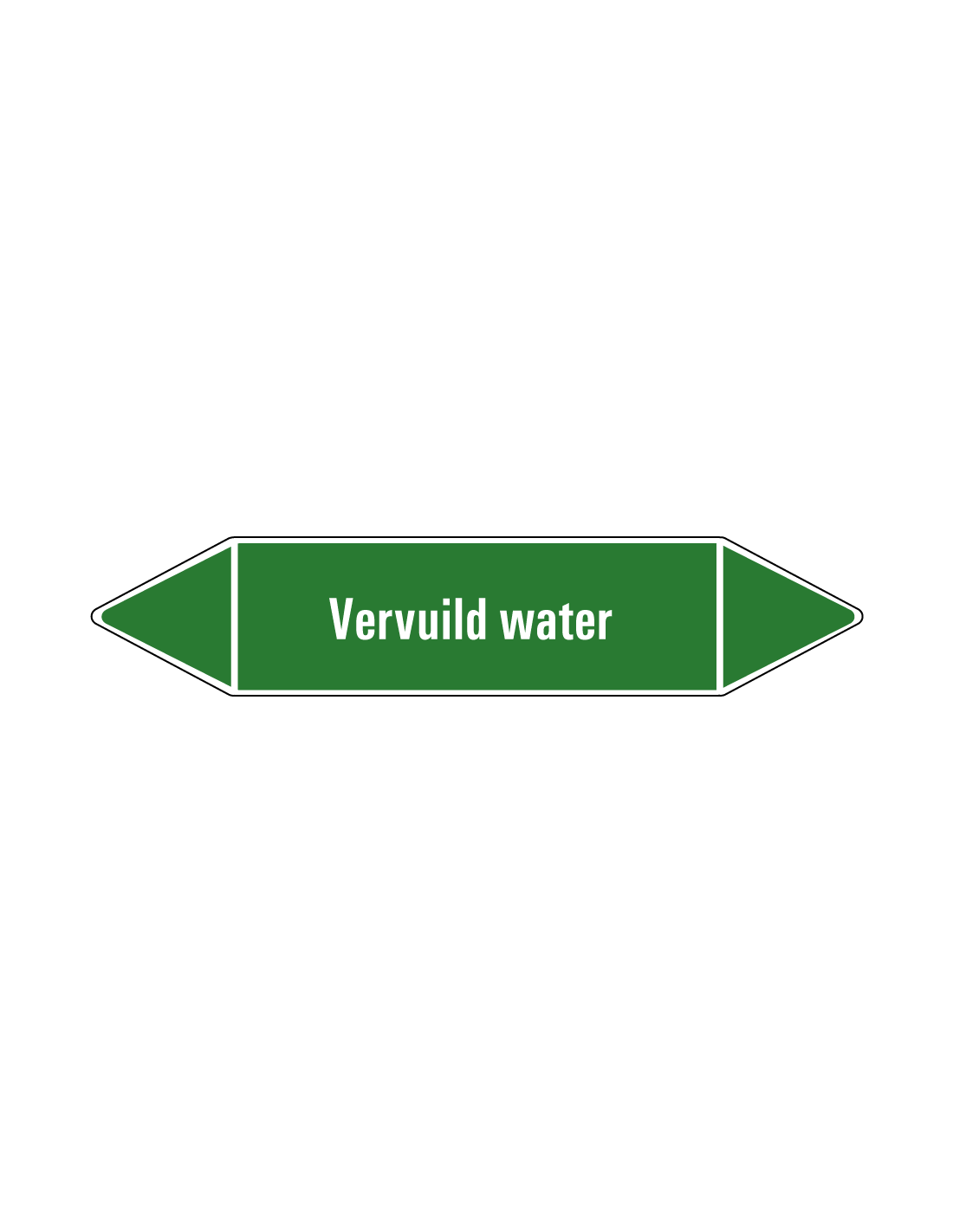 De vervuild water leidingmarkering op vel wordt gebruikt om aan te geven dat er in een bepaalde leiding water stroomt. In dit geval gaat het om de specifieke aanduiding van vervuild water. Aan beide kanten van de leidingmarkering zit een stroomrichting uiteinde. Afhankelijk van hoe de de leiding stroomt kan één zijde verwijderd worden.