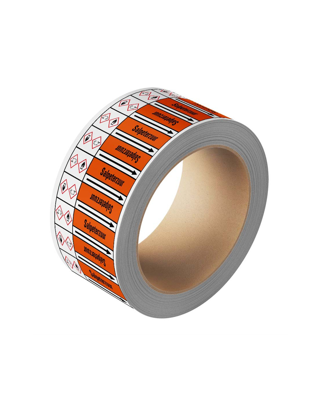 Belangrijkste kenmerken Salpeterzuur leidingmarkering op rol, 25 meter