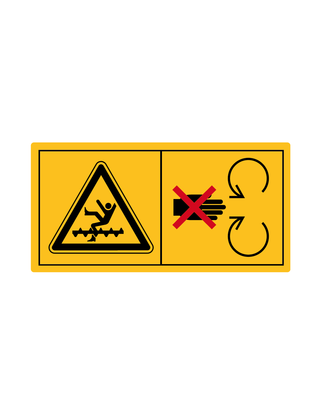 Deze machine sticker is conform volgens ISO 11684, wat betekent dat dit de officiële machinemarkering is bij de desbetreffende gevaren.
