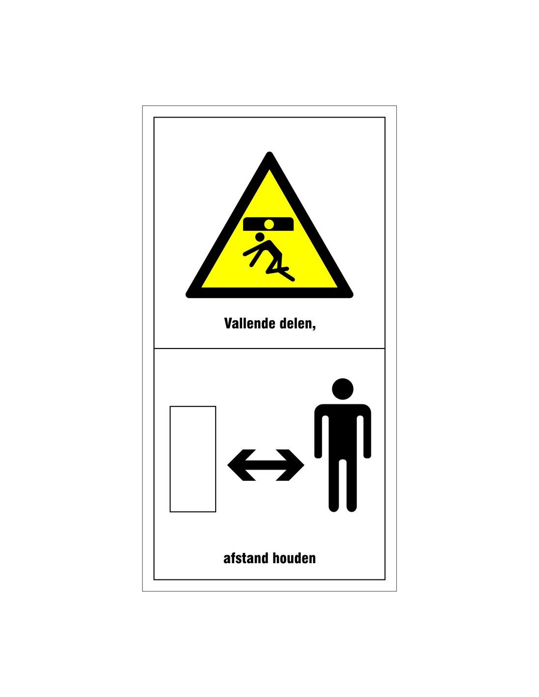 Deze machinemarkering sticker zegt 'Vallende delen en afstand houden!'. Ondanks dat werknemers vaak goed overweg kunnen met machines, zit een ongeluk toch in een klein hoekje. Daarom kunnen machine stickers niet ontbreken. Machine etiketten dragen boodschappen over aan werknemers. Dit kunnen specifieke waarschuwingen zijn, hierdoor kunnen werknemers beter op een situatie anticiperen en hierop weer vervolgens reageren. Door het toepassen van deze sticker op uw machines wordt de veiligheid van uw werknemers gewaarborgd.