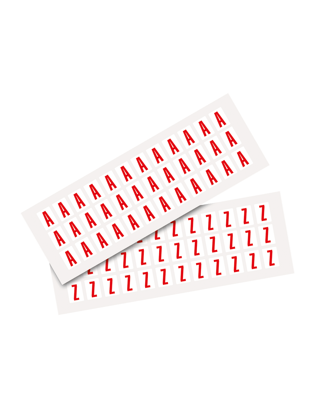 Met deze Set letter stickers alfabet - 26 kaarten - rood wit maak je schapruimte identificatie eenvoudig en overzichtelijk. Deze stickers zijn vervaardigd van zelfklevende folielaag, waardoor ze moeiteloos en stevig hechten aan diverse oppervlakken. De stickers zijn beschikbaar in verschillende afmetingen: 15mm, 25mm, 50mm en 95mm. De stickers zijn vervaardigd van een zelfklevende folielaag, hierdoor zijn de stickers gemakkelijk te verwijderen zonder het achter laten van resten. Het moderne Helvetica semi-bold lettertype zorgt voor een duidelijke en goed leesbare identificatie. Elke verpakking bevat 26 kaarten, waardoor je voldoende stickers hebt voor diverse toepassingen.
